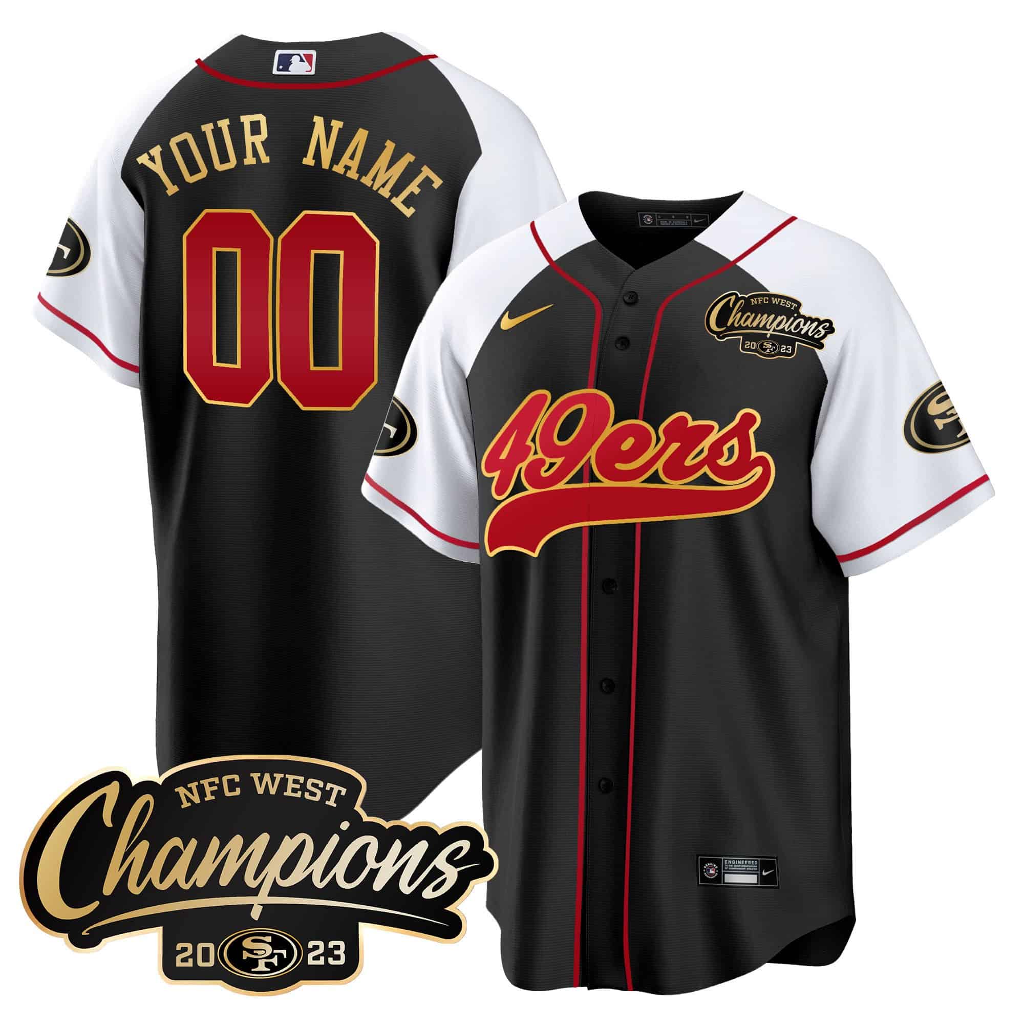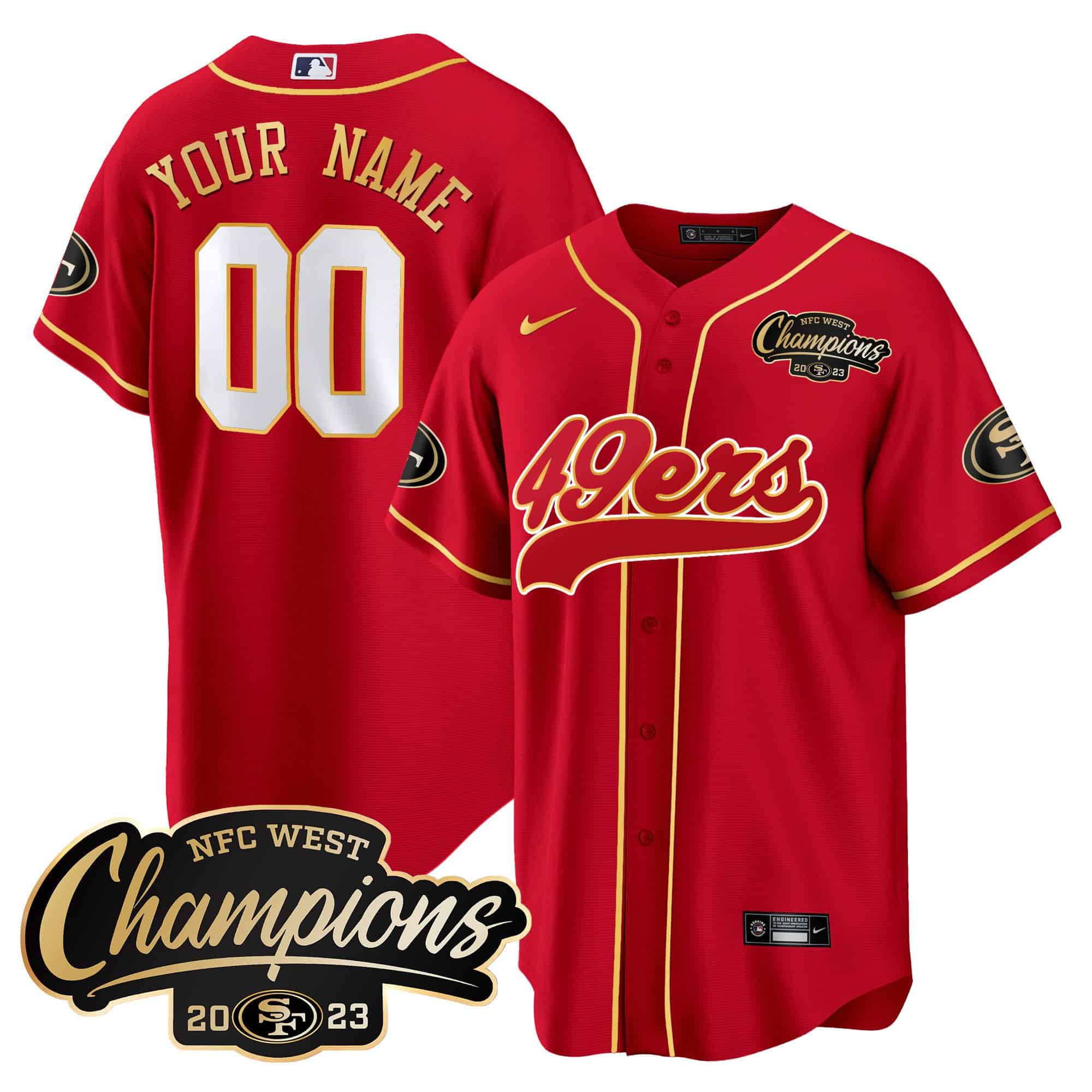 49ers 2023 NFC West Champions Baseball Gold Trim Custom Jersey – All Stitched