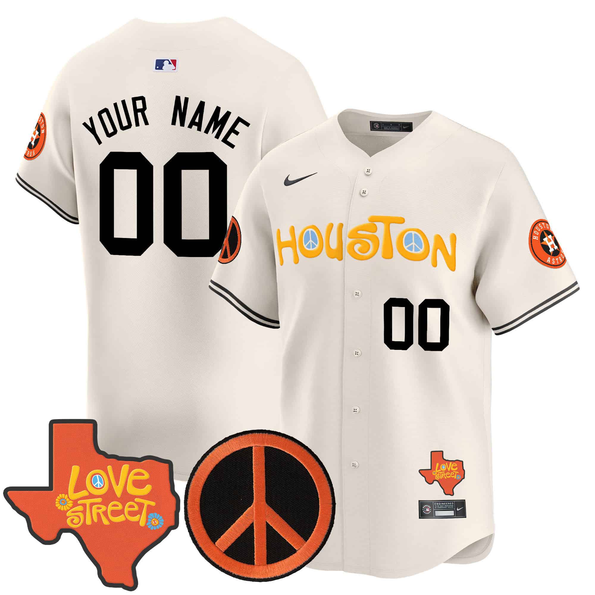 Astros Love Street & Peace Sign Patch Vapor Premier Limited Custom Jersey V2 – All Stitched