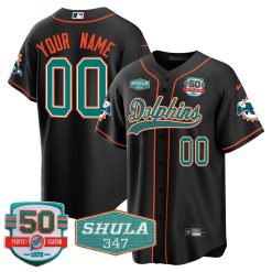 Dolphins 50th & Don Shula 347 Memorial Patch Baseball Custom Jersey – All Stitched