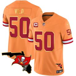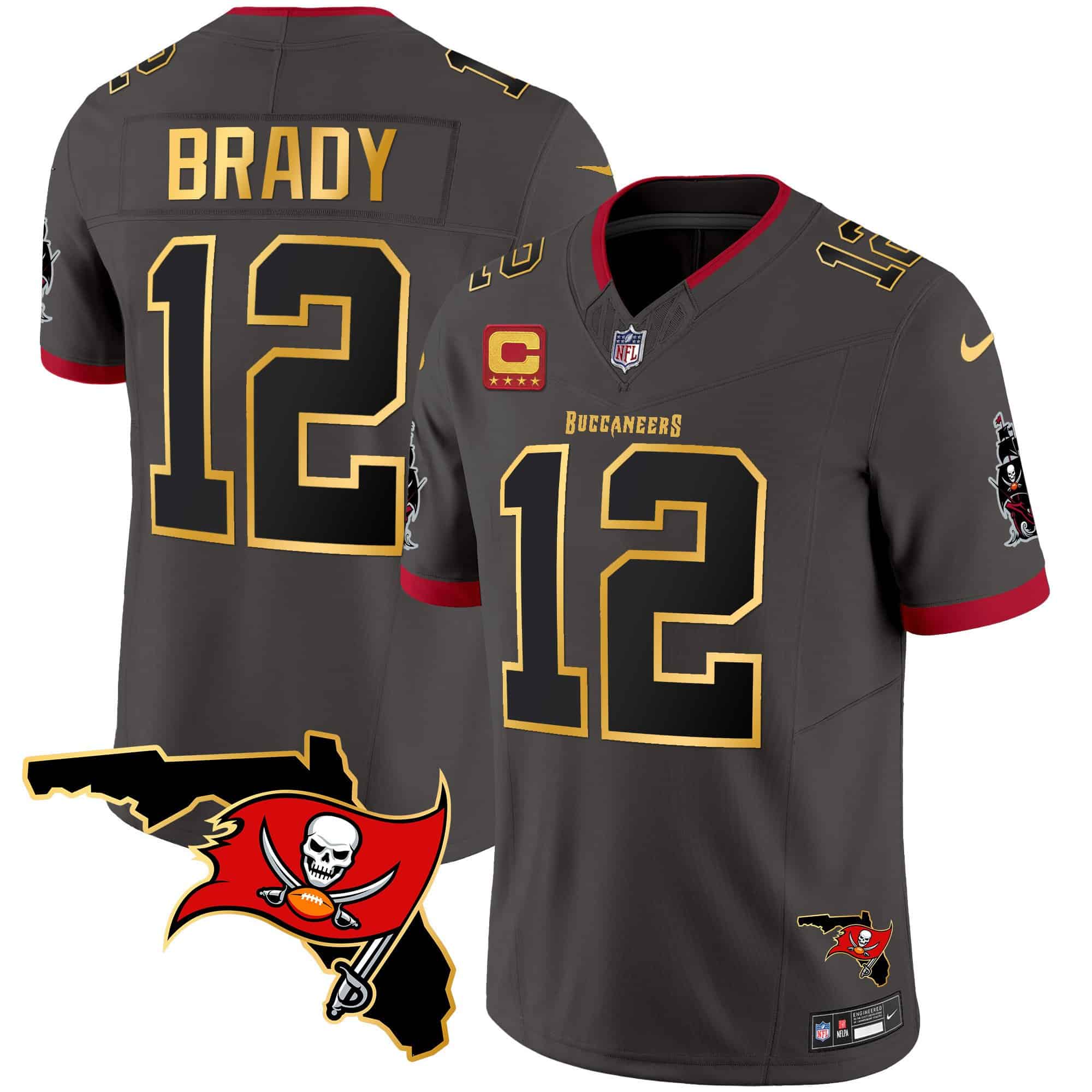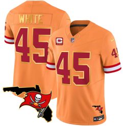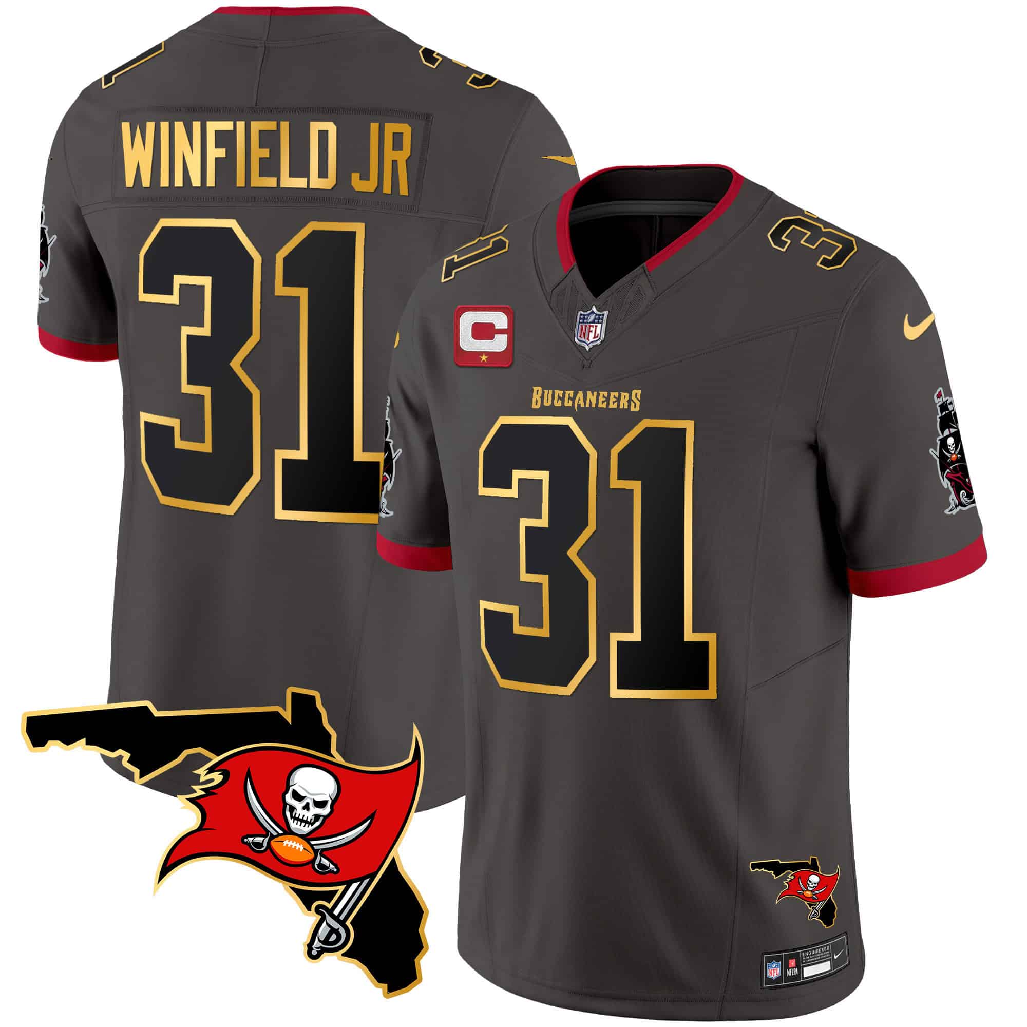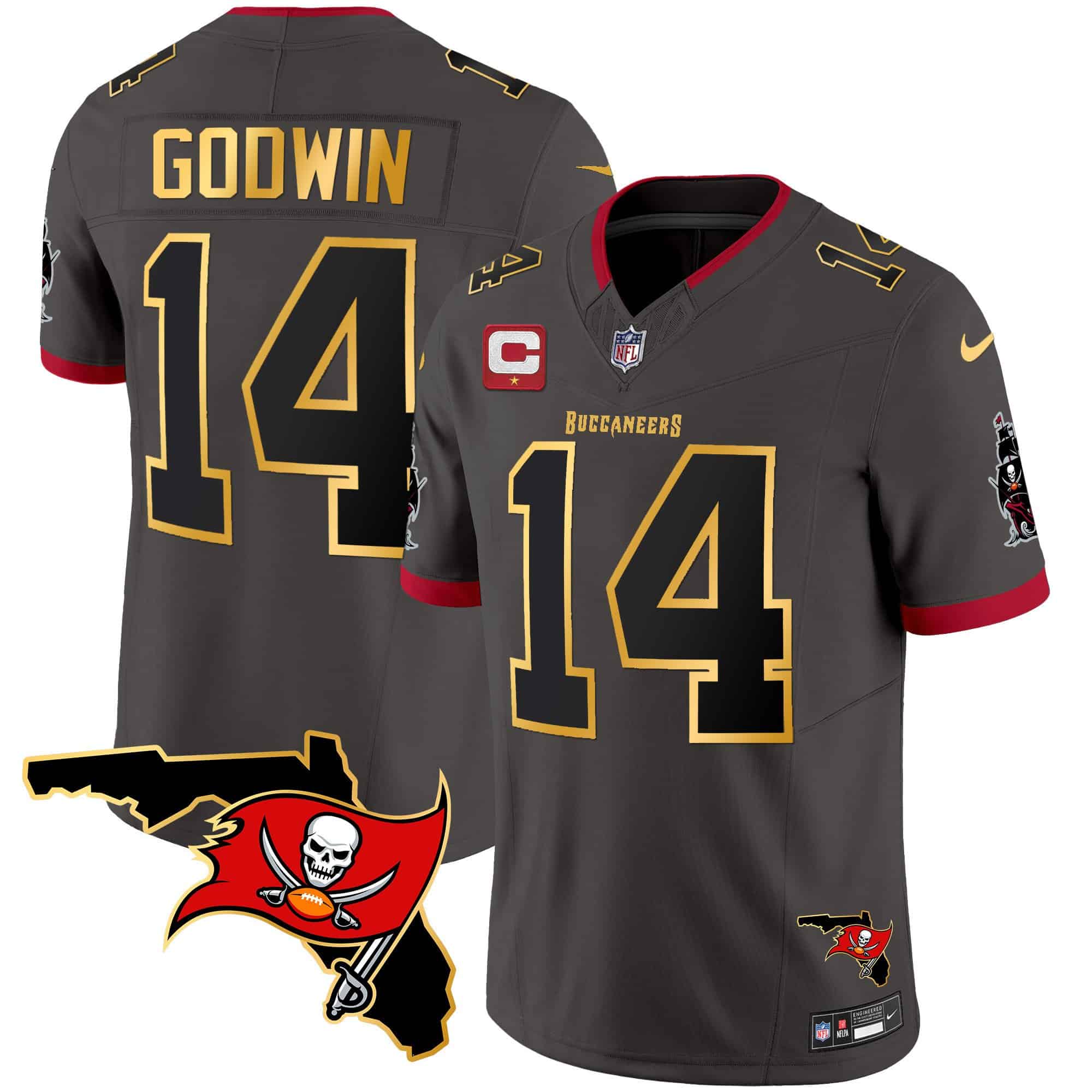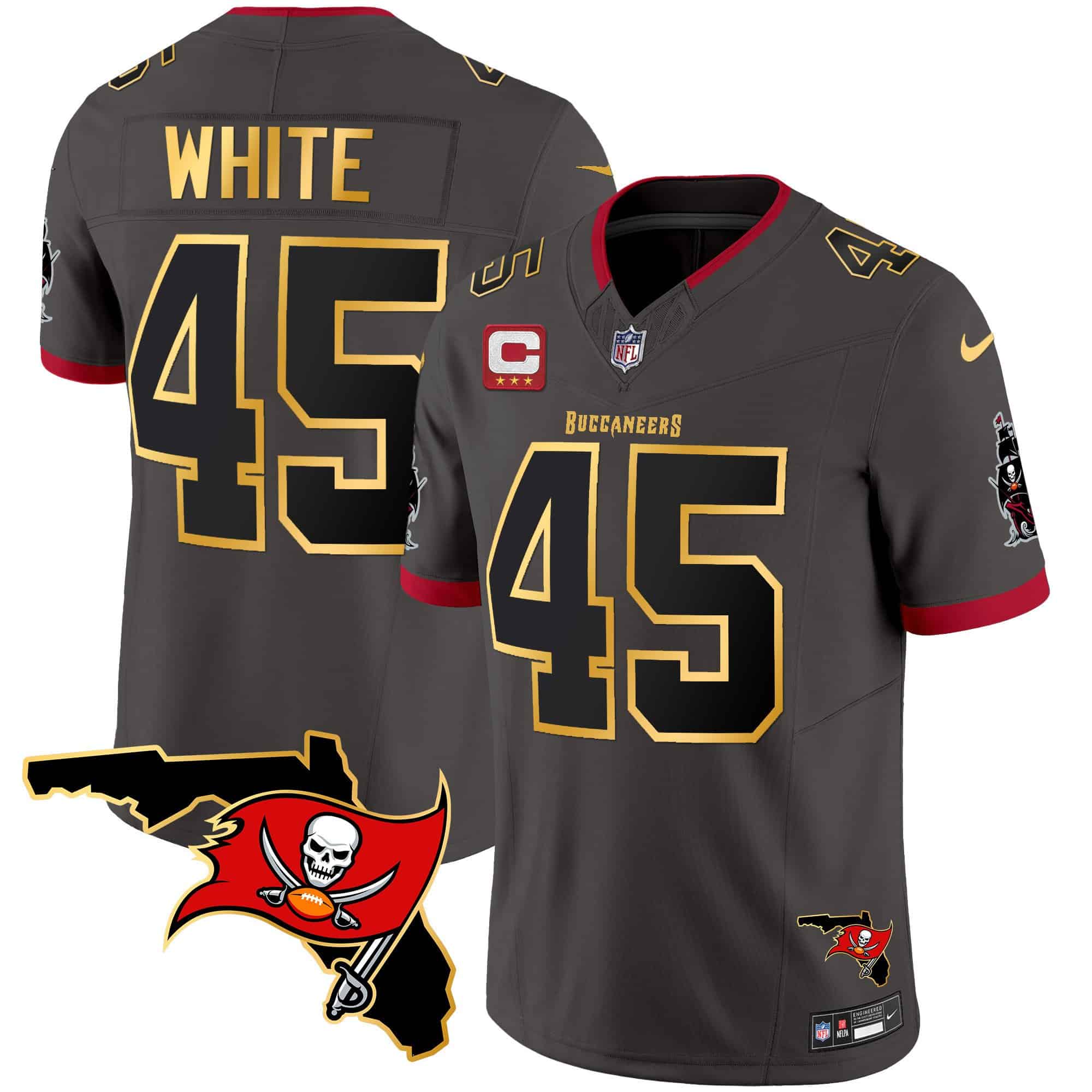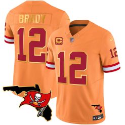Men’s Buccaneers Florida Patch Gold Trim Vapor Jersey – All Stitched