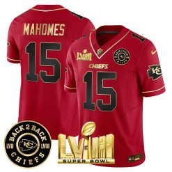 Men’s Chiefs Super Bowl LVIII & Back 2 Back Patch Vapor Jersey V3 – All Stitched