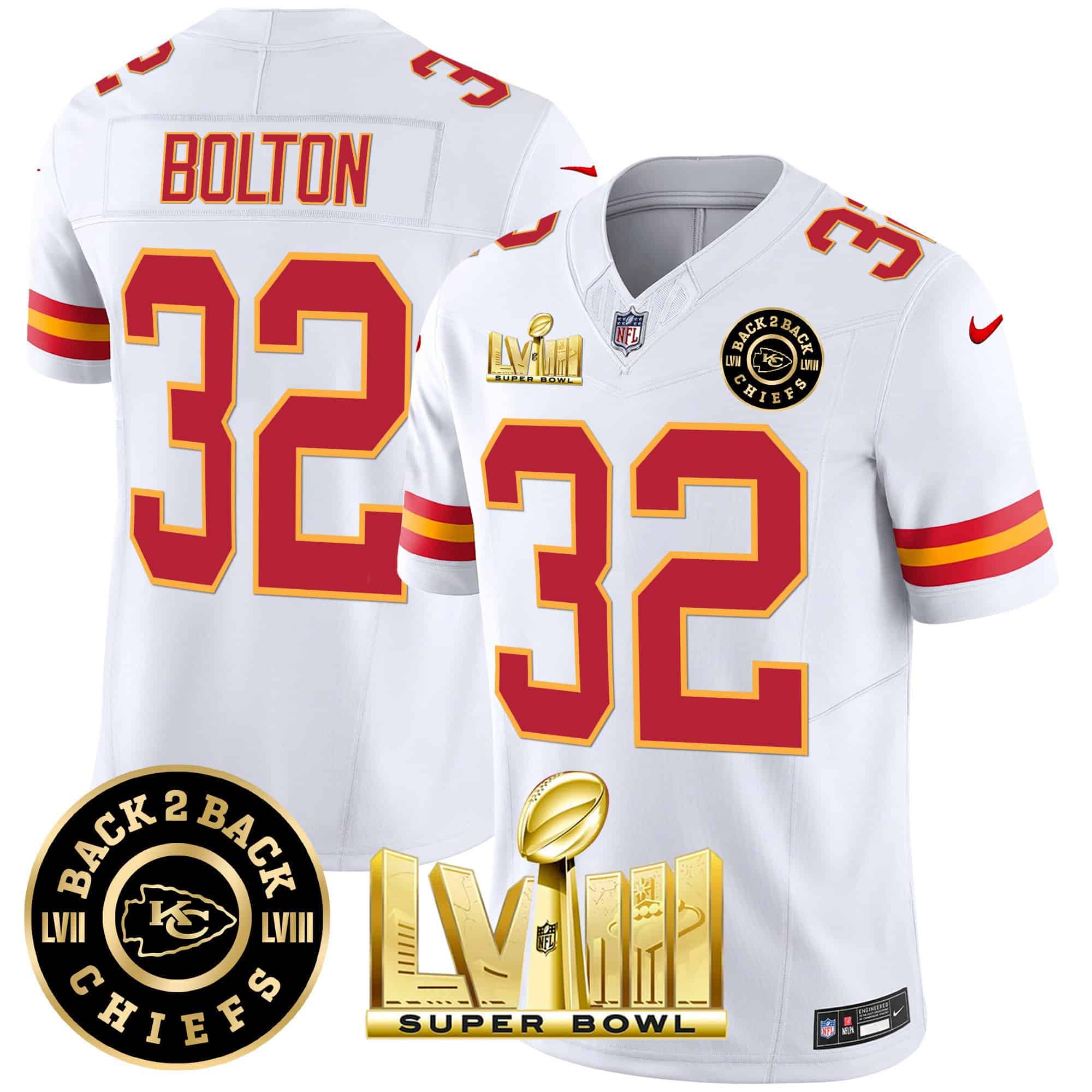Men's Chiefs Super Bowl LVIII & Back 2 Back Patch Vapor Jersey V3 - All Stitched