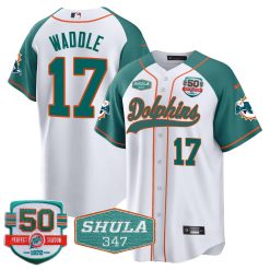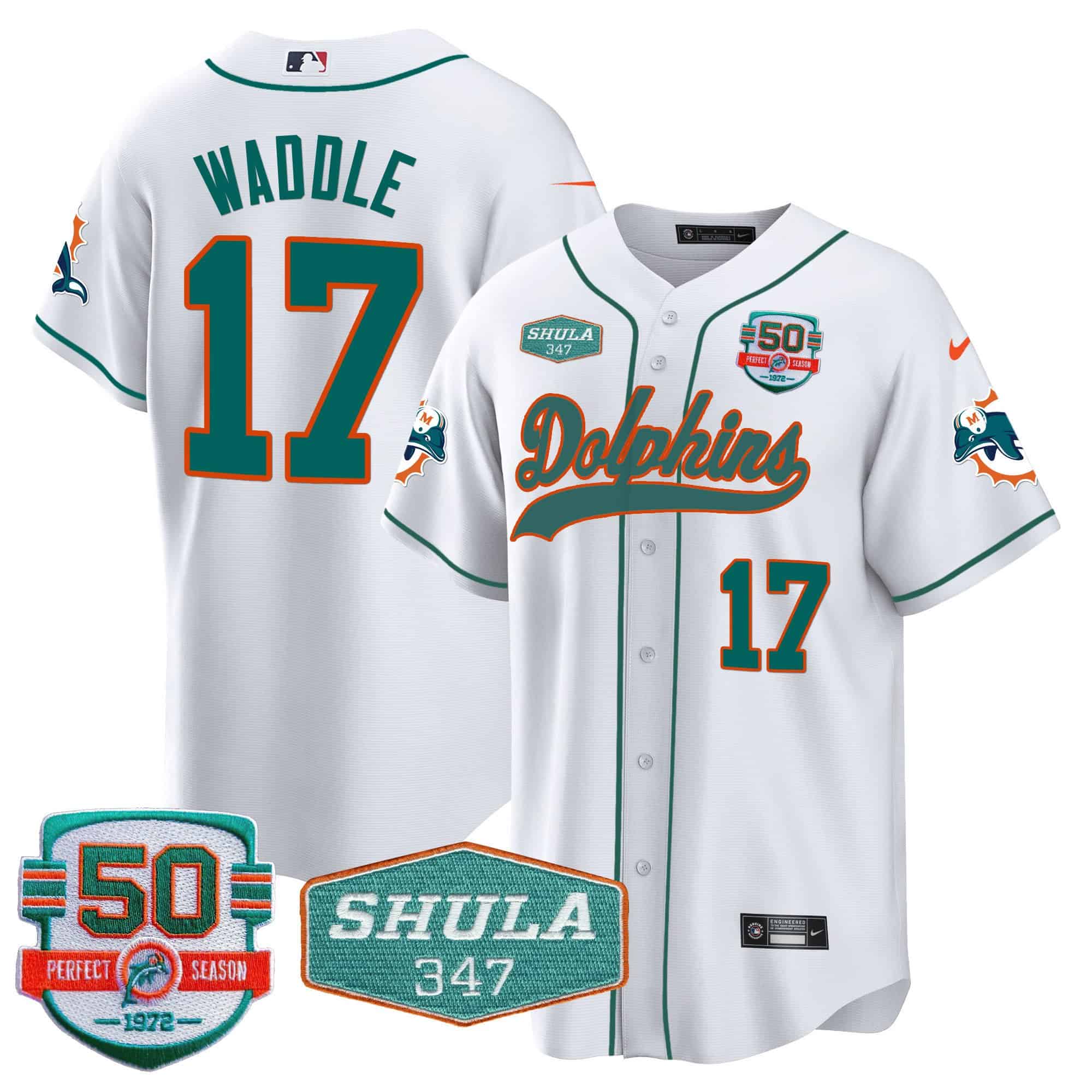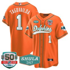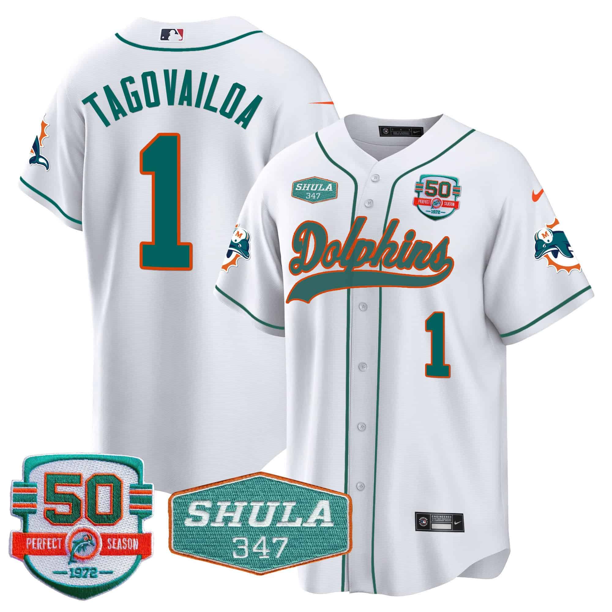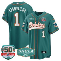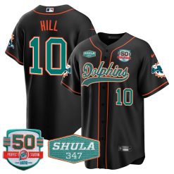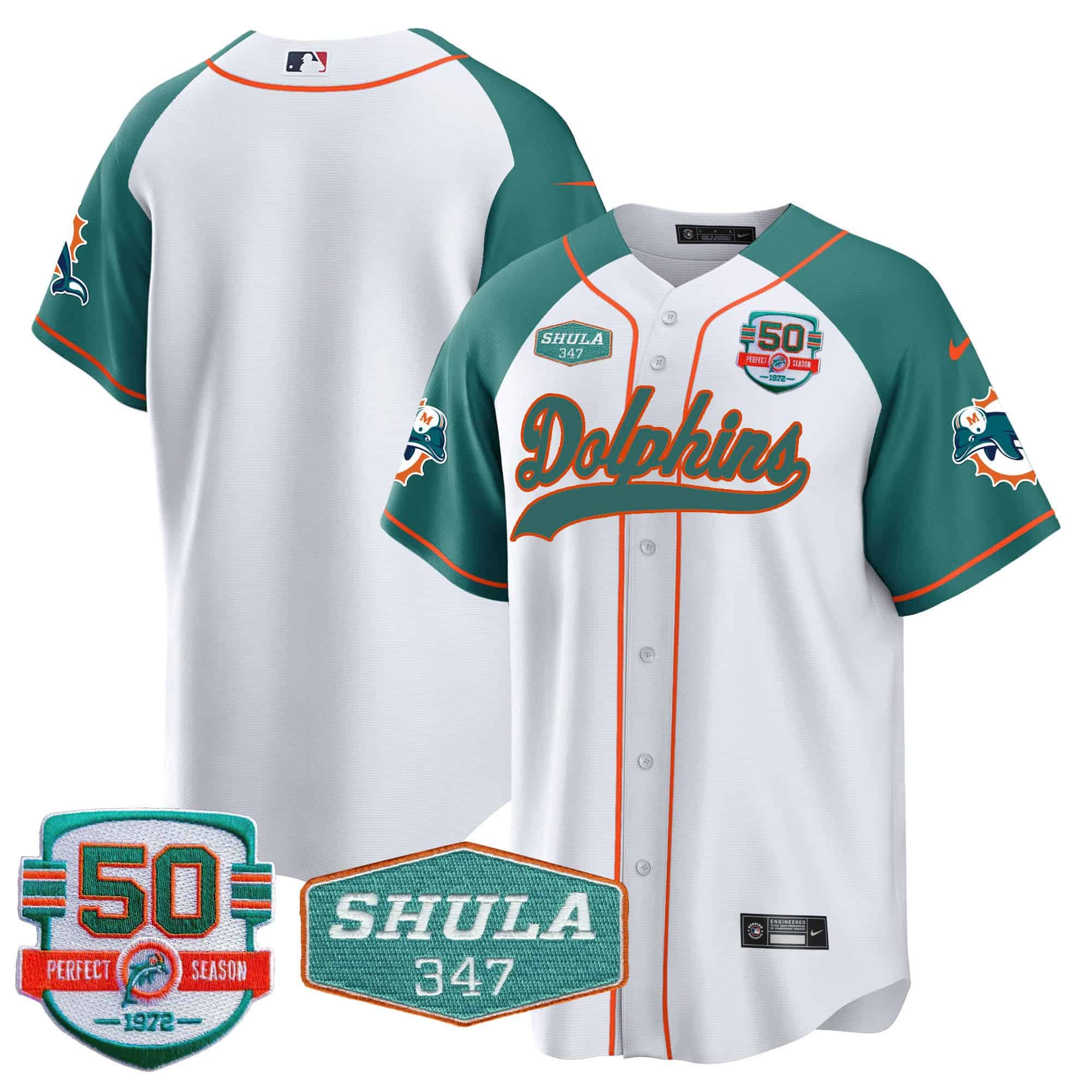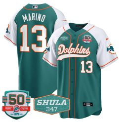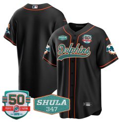 Men’s Dolphins 50th & Don Shula 347 Memorial Patch Baseball Jersey – All Stitched