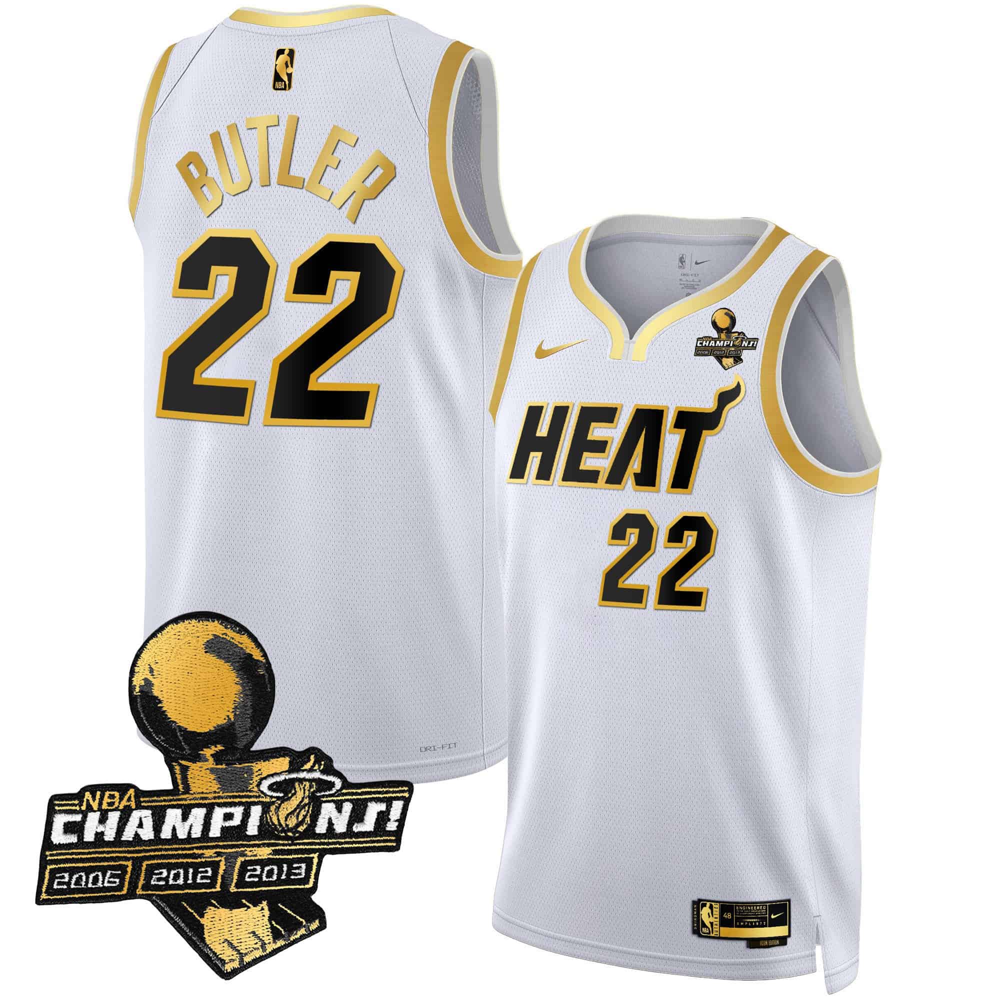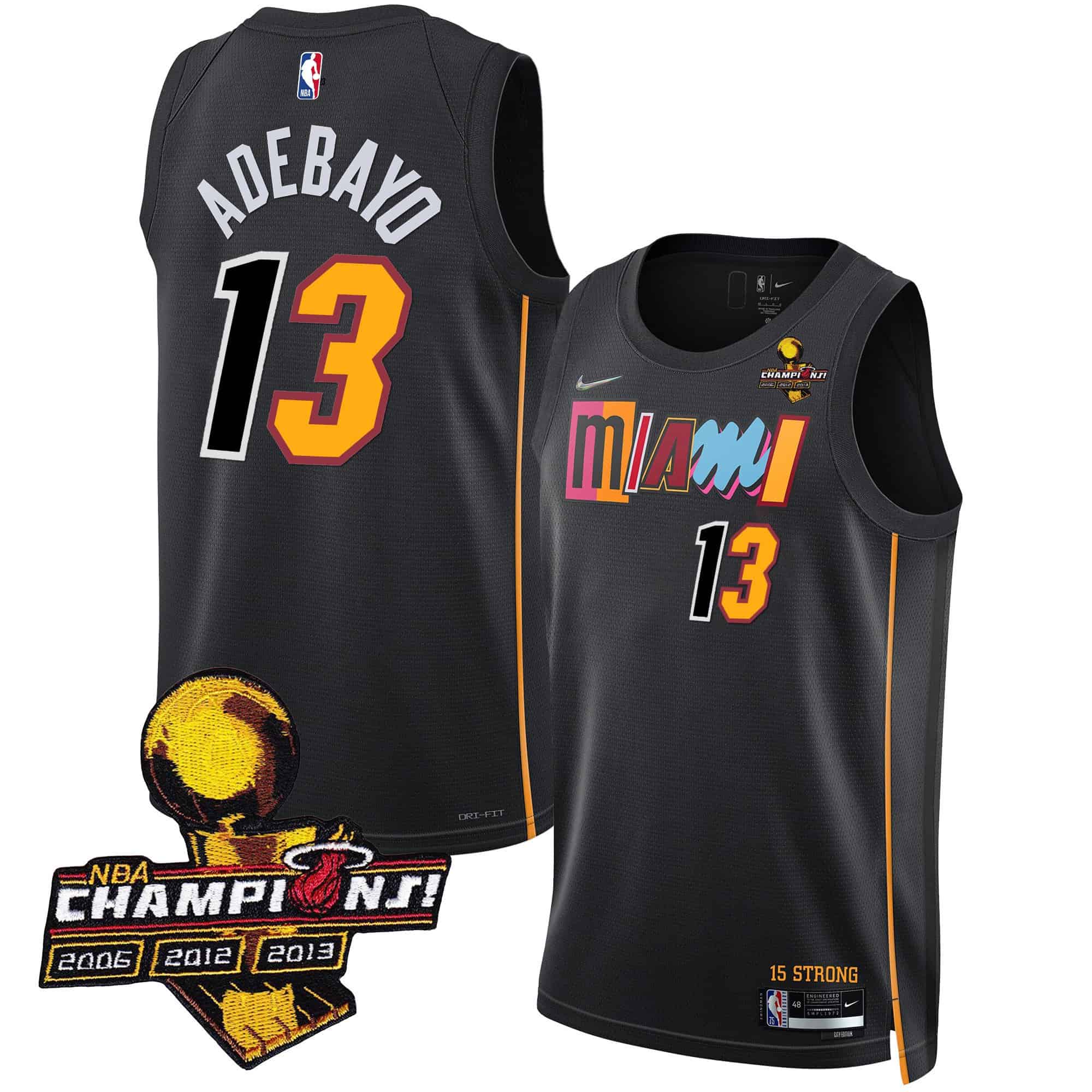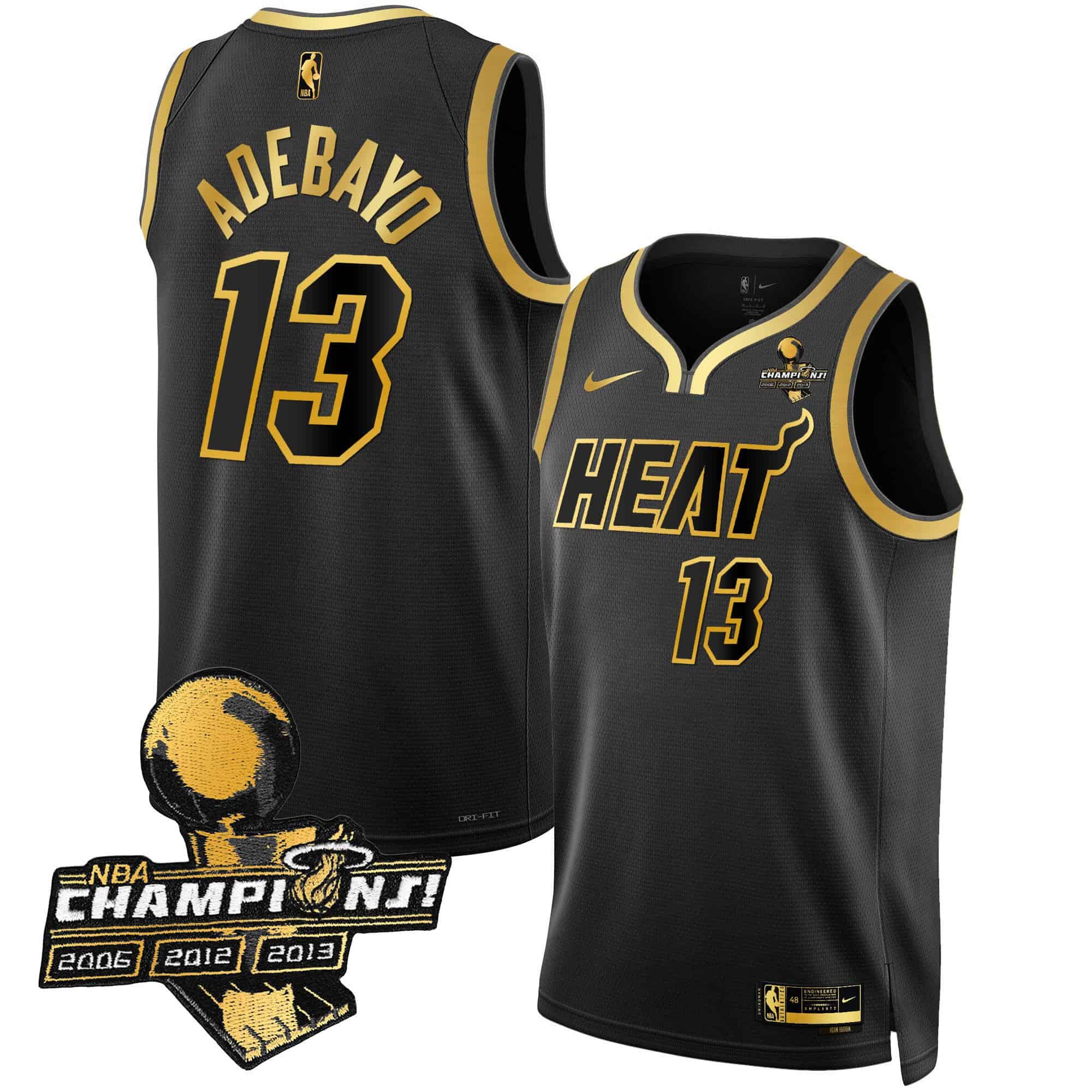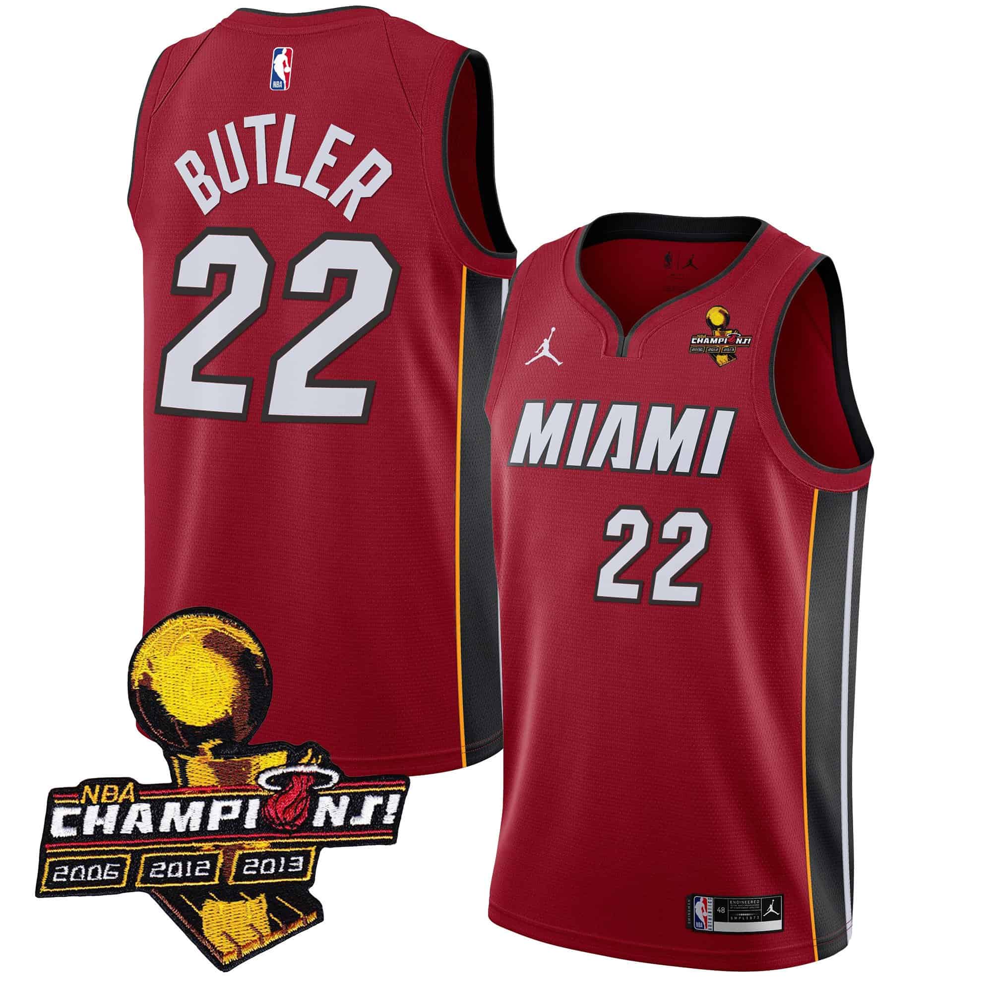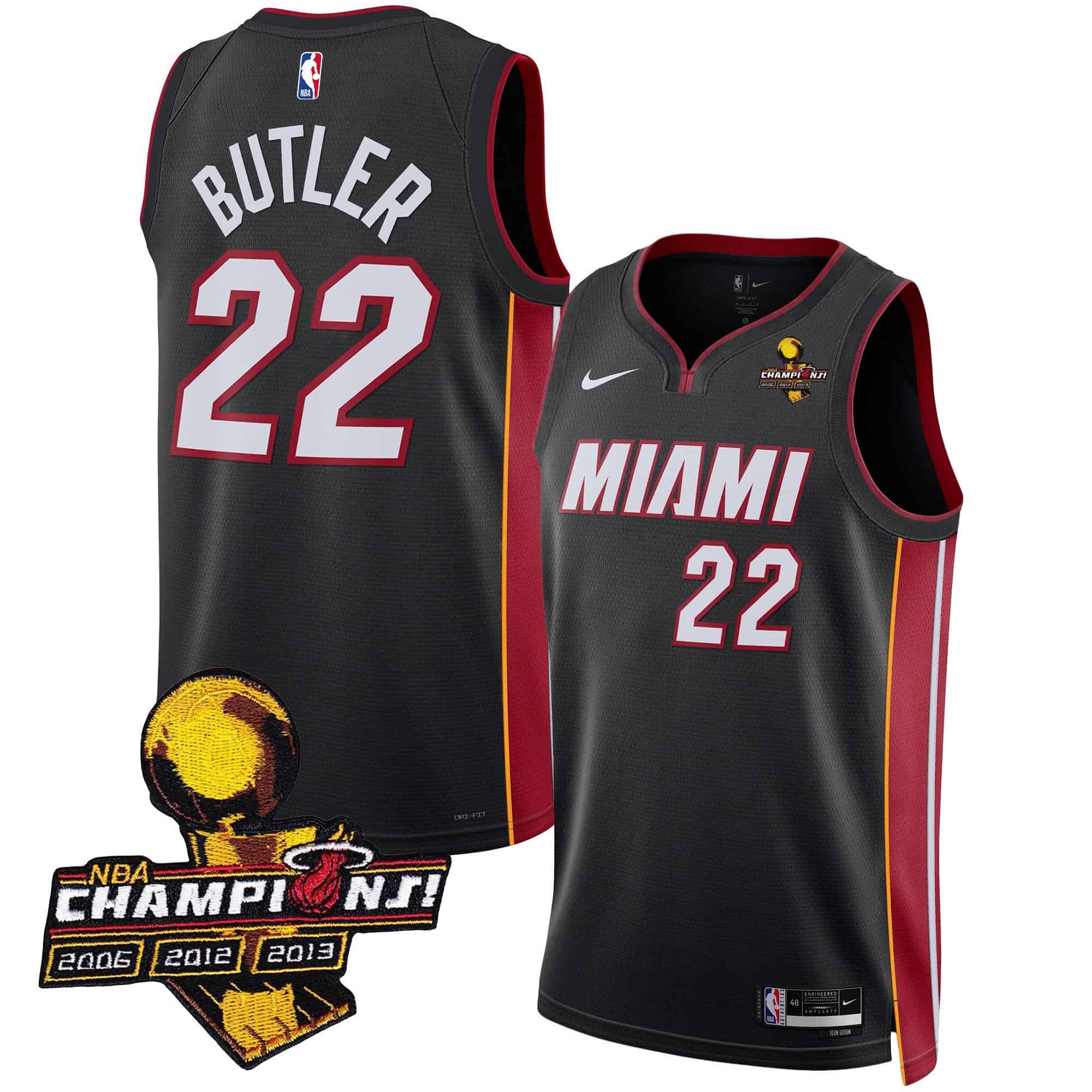 Men’s Miami Heat 3-Time Champions Patch Collection Jersey – All Stitched