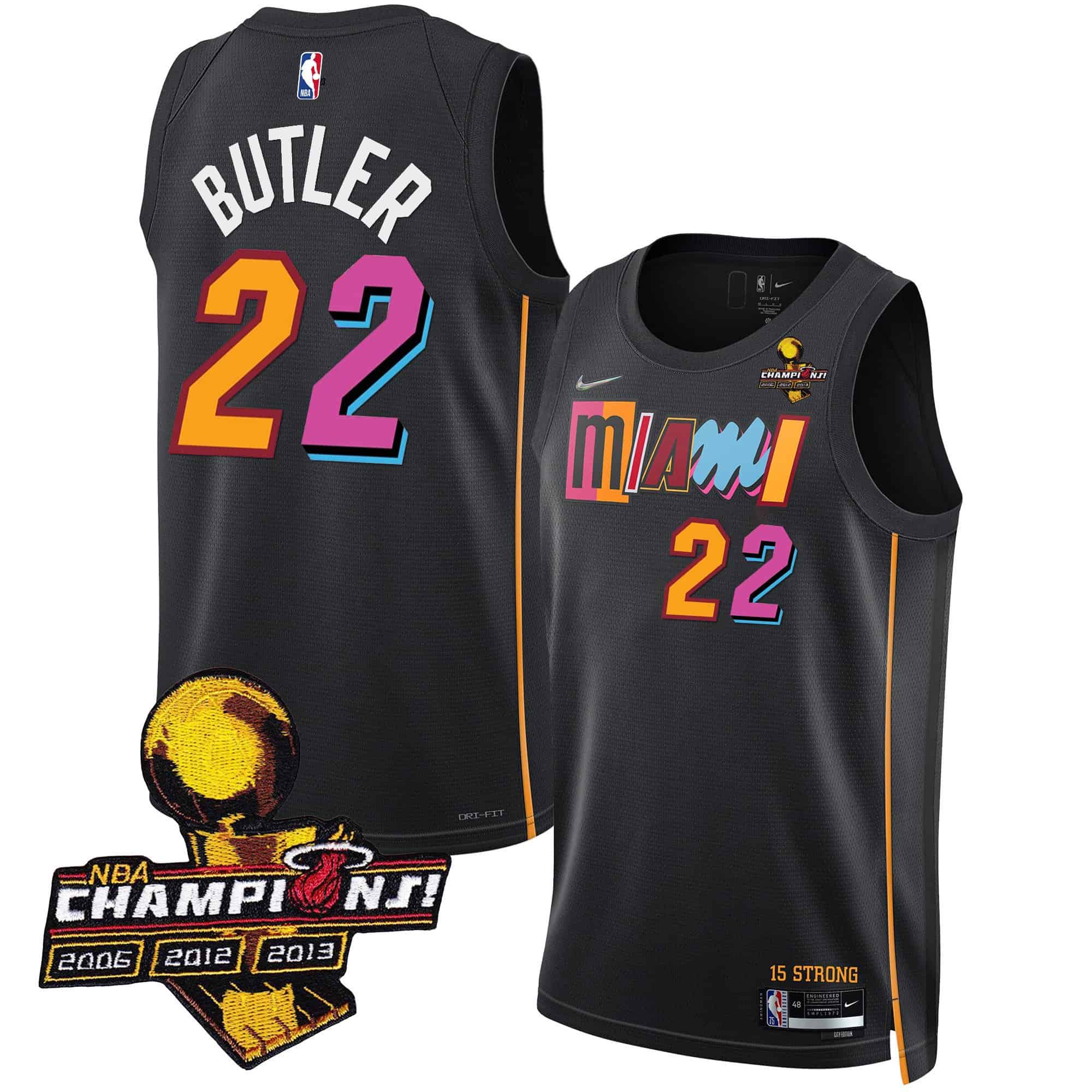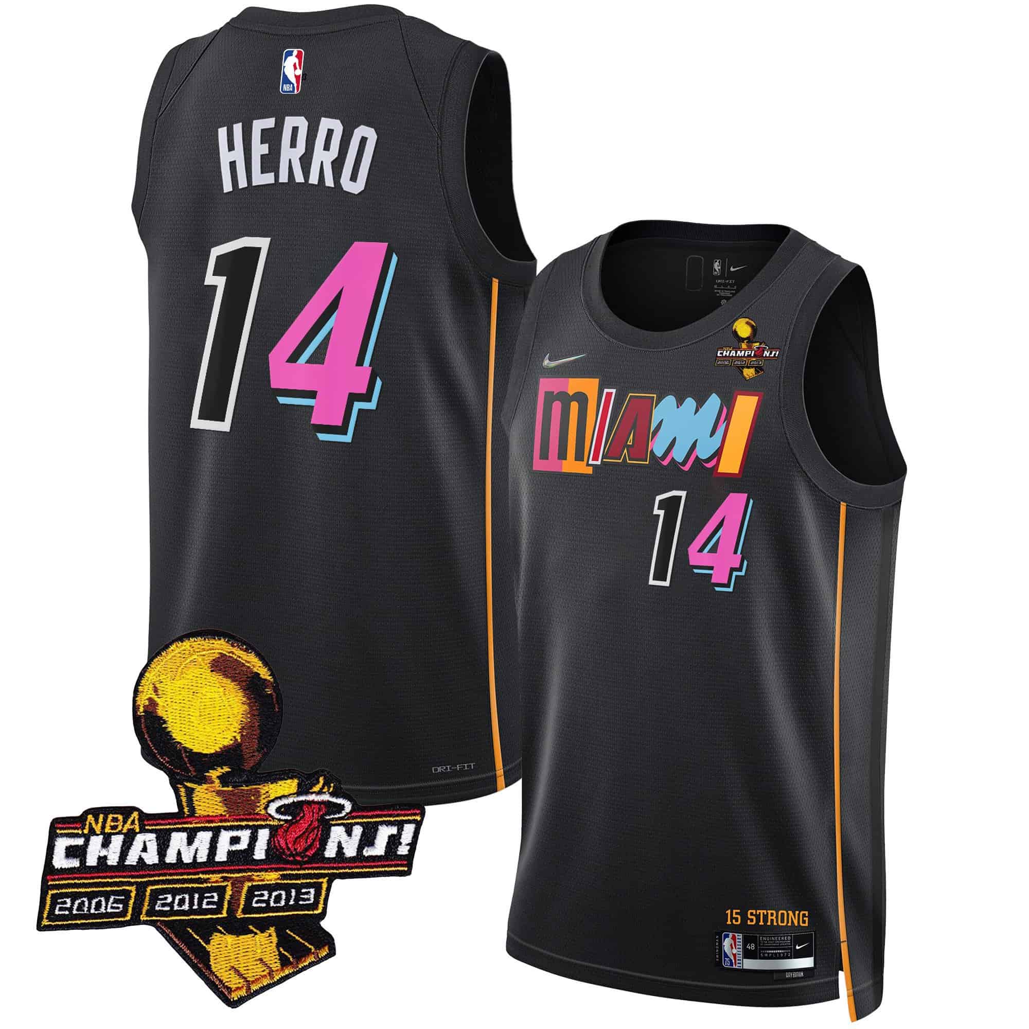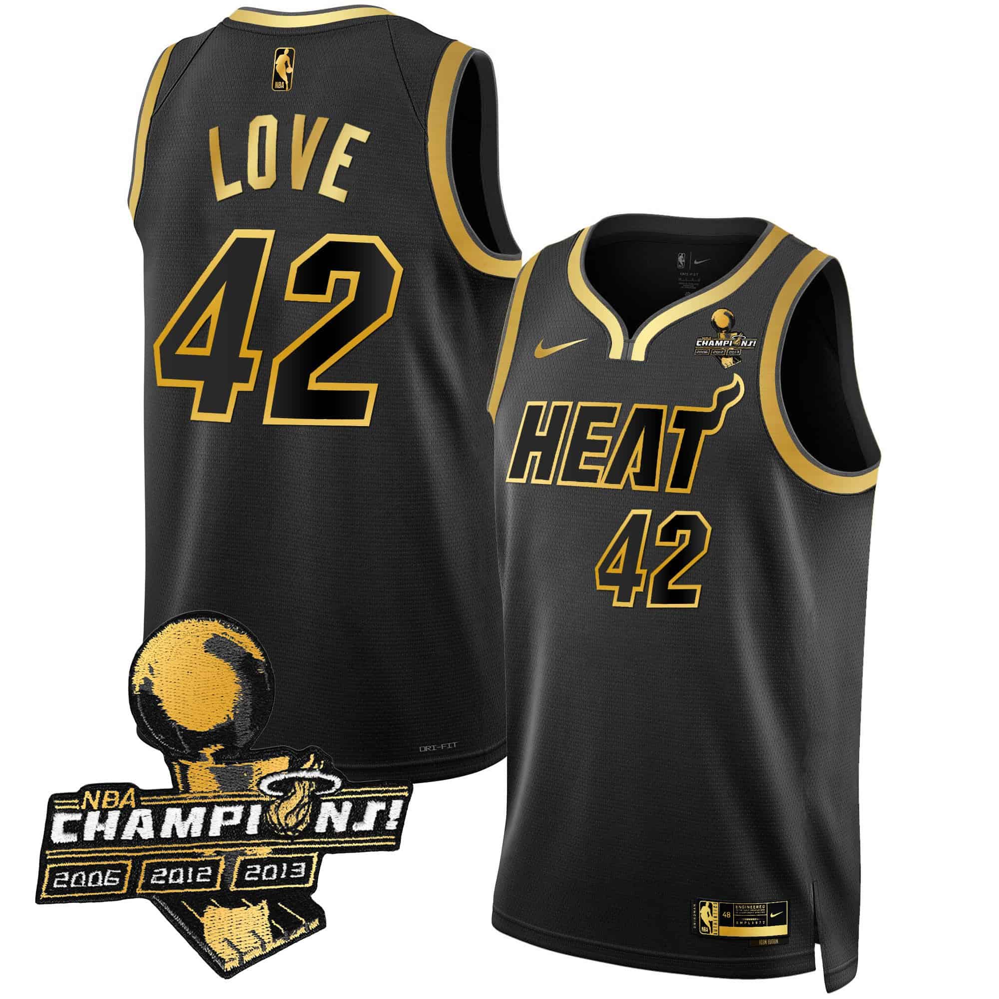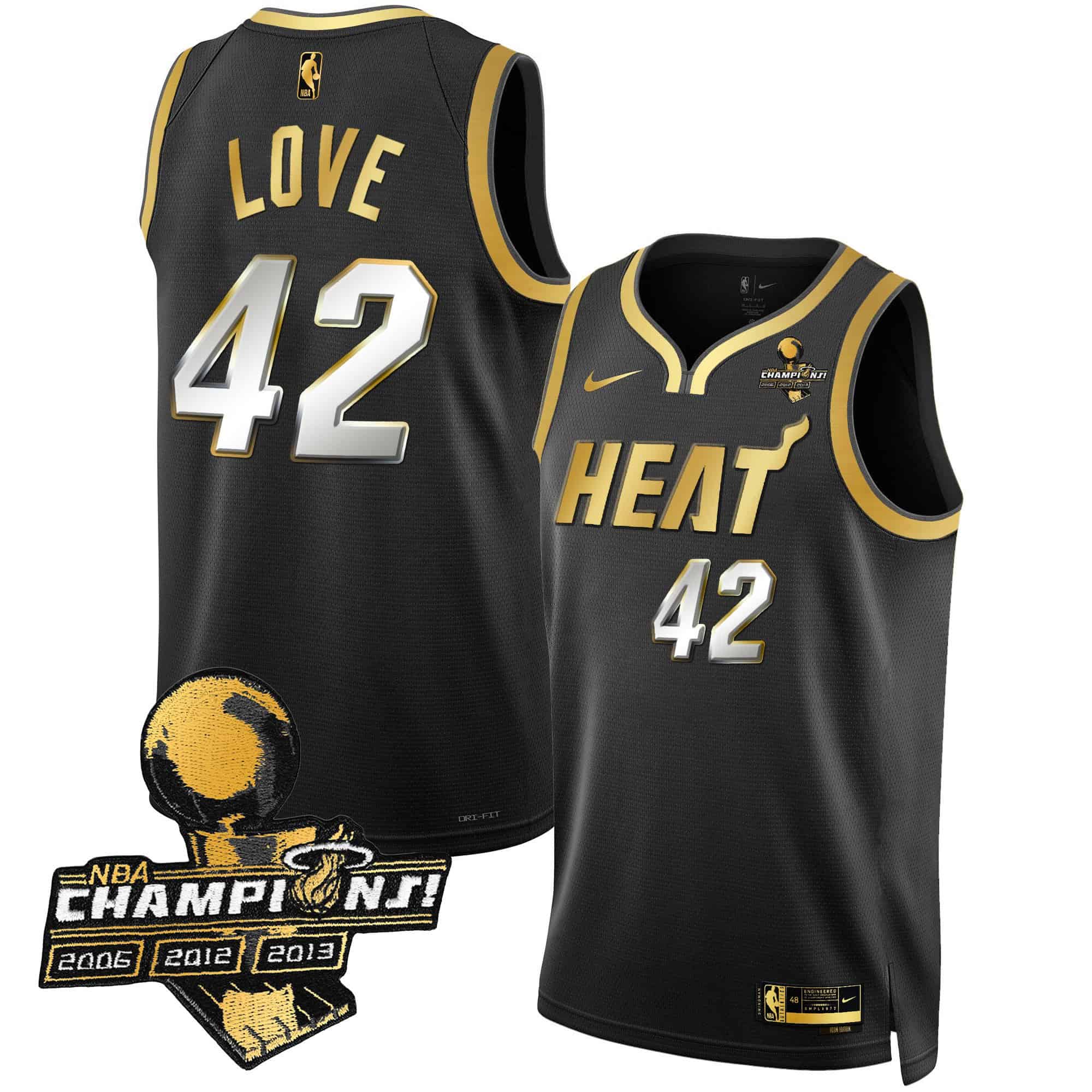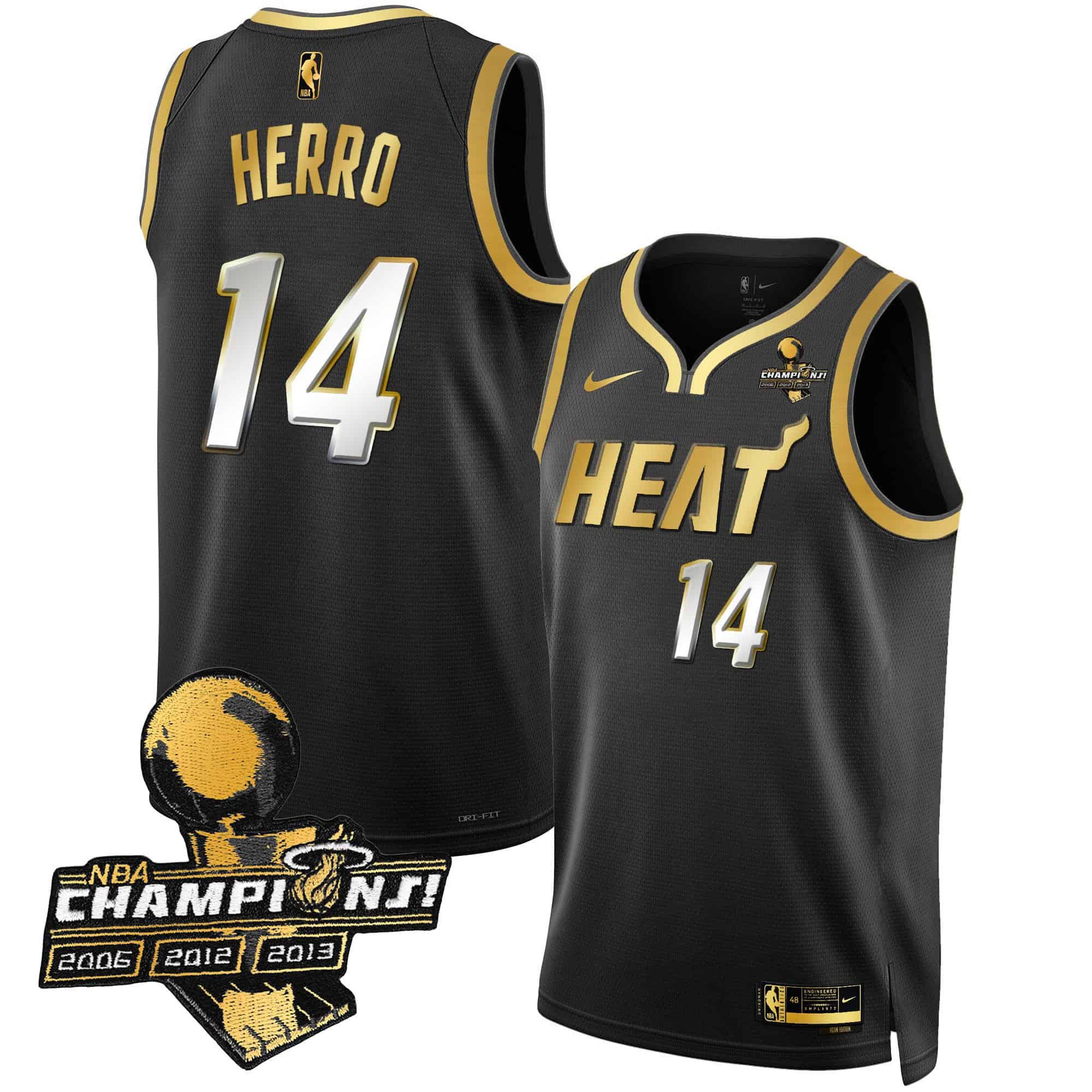 Men’s Miami Heat 3-Time Champions Patch Collection Jersey – All Stitched