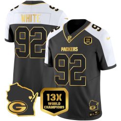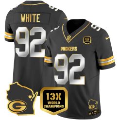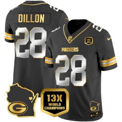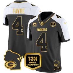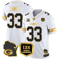 Men’s Packers 13 Time World Champions & Home Patch Gold Vapor Jersey V2 – All Stitched