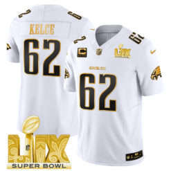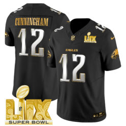 Men’s Philadelphia Eagles Super Bowl LIX Patch Gold Vapor Limited Jersey – All Stitched