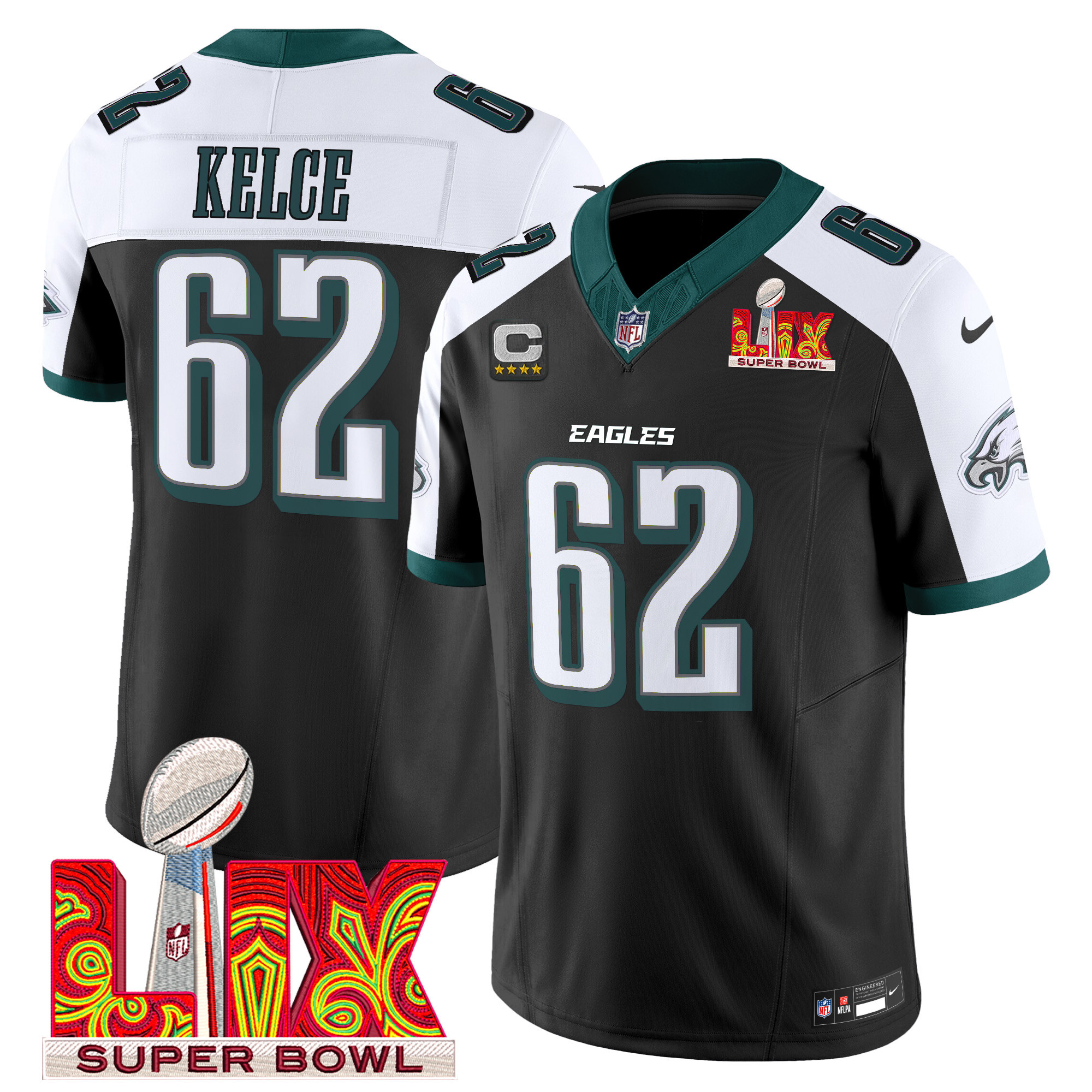 Men’s Philadelphia Eagles Super Bowl LIX Patch Vapor Limited Jersey – All Stitched