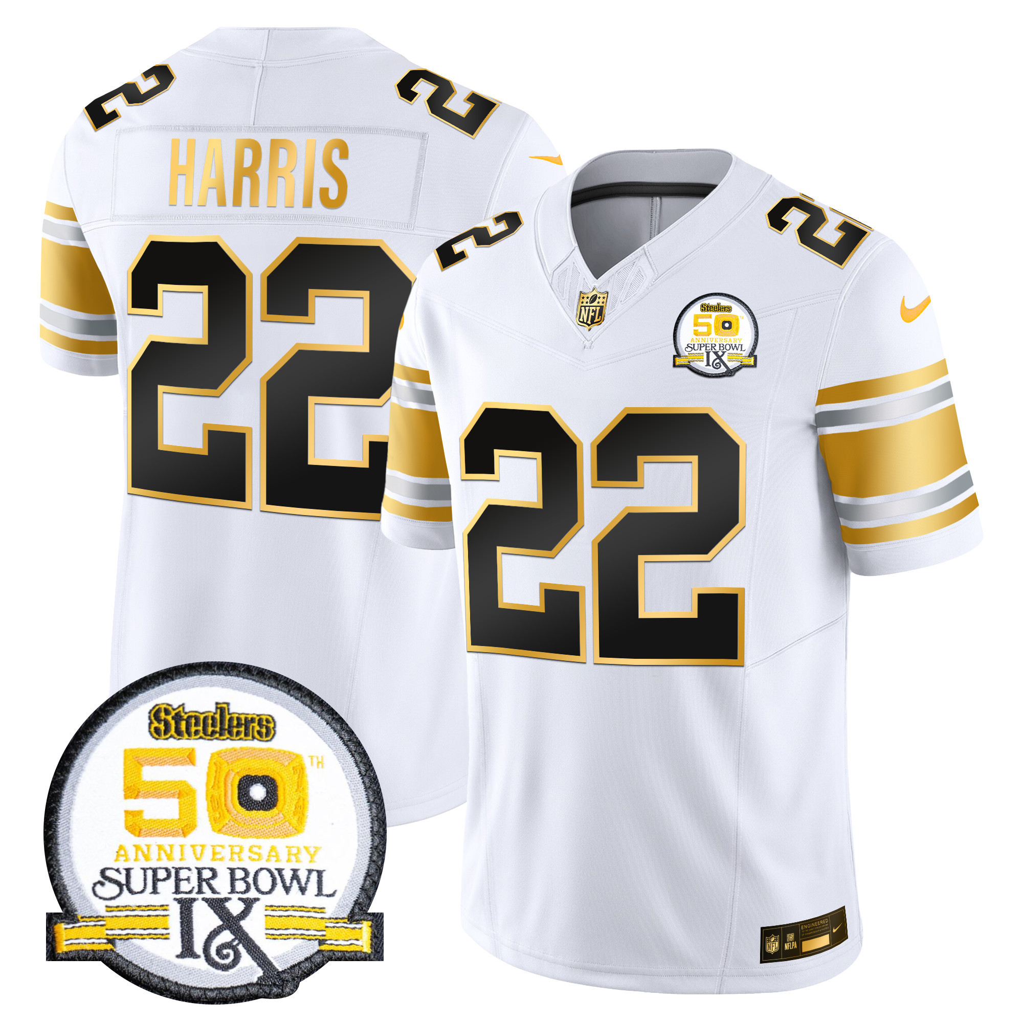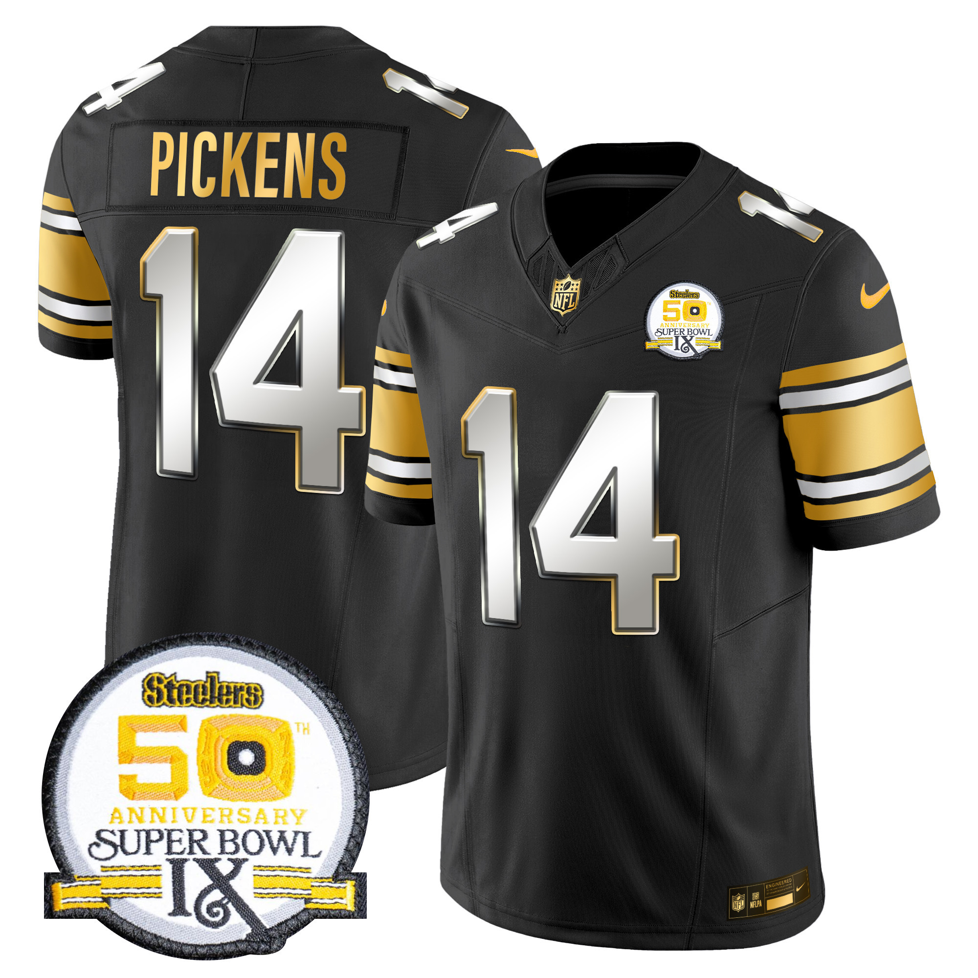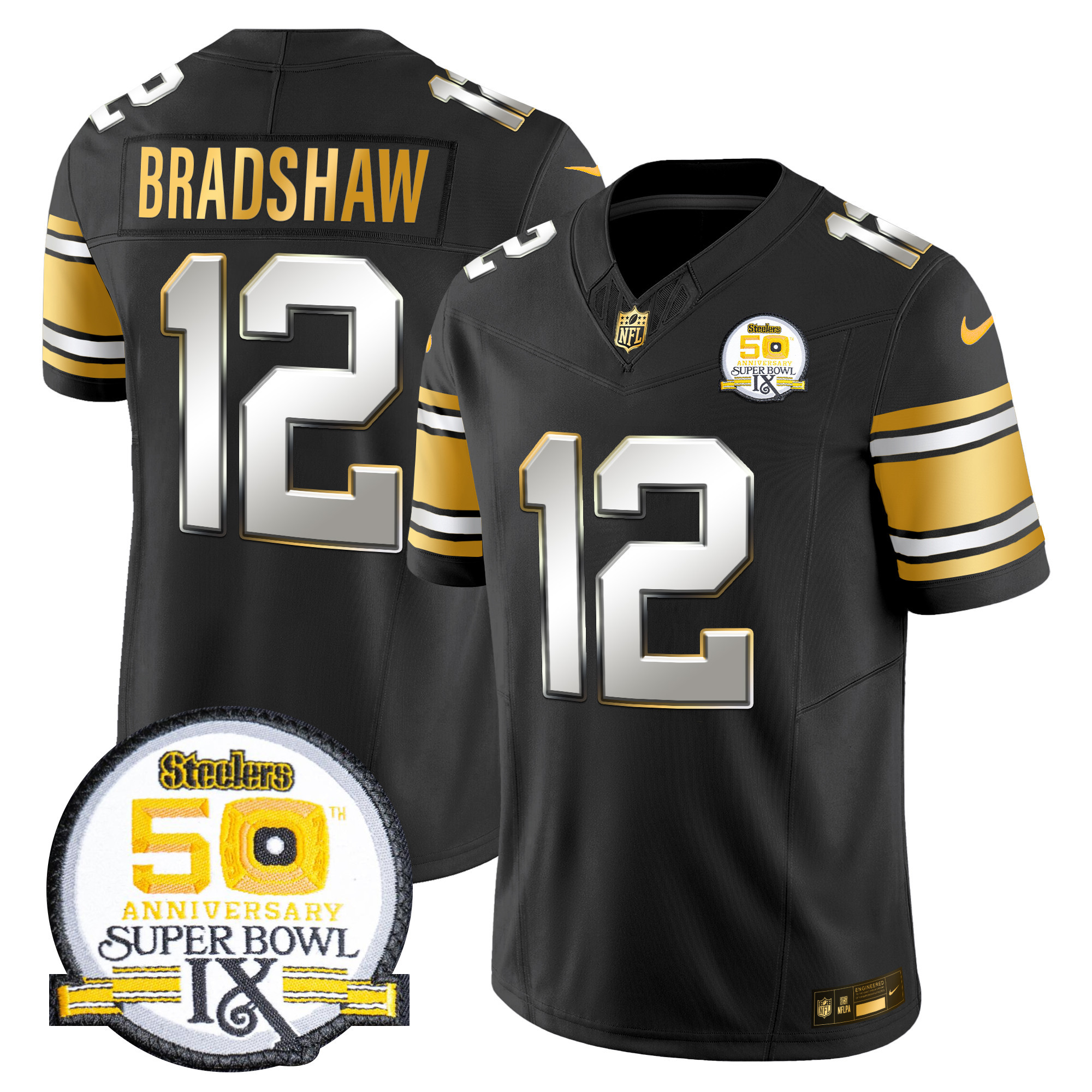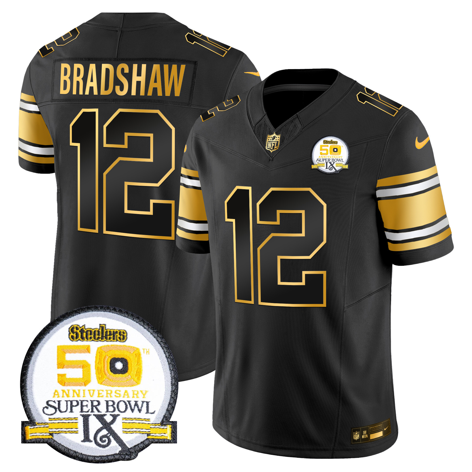 Men’s Steelers 50th Anniversary of Super Bowl IX Patch Gold Vapor Limited Jersey – All Stitched