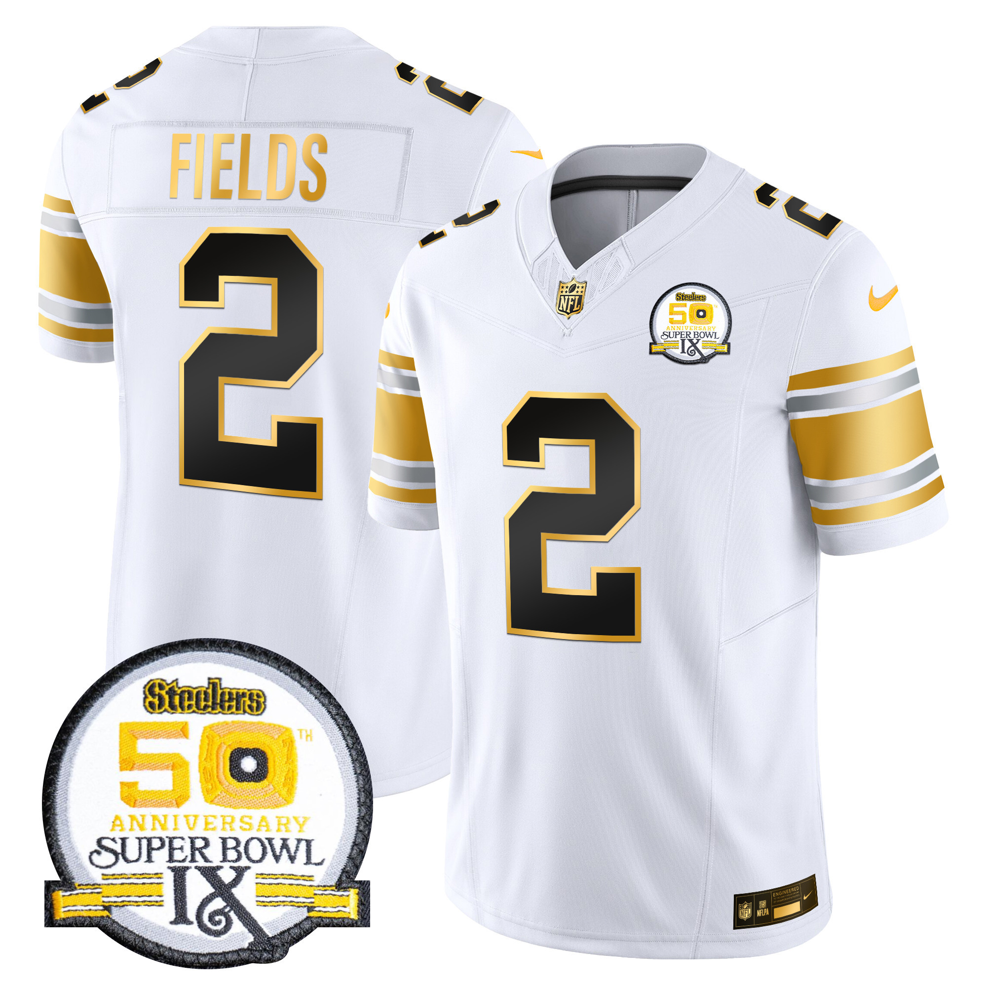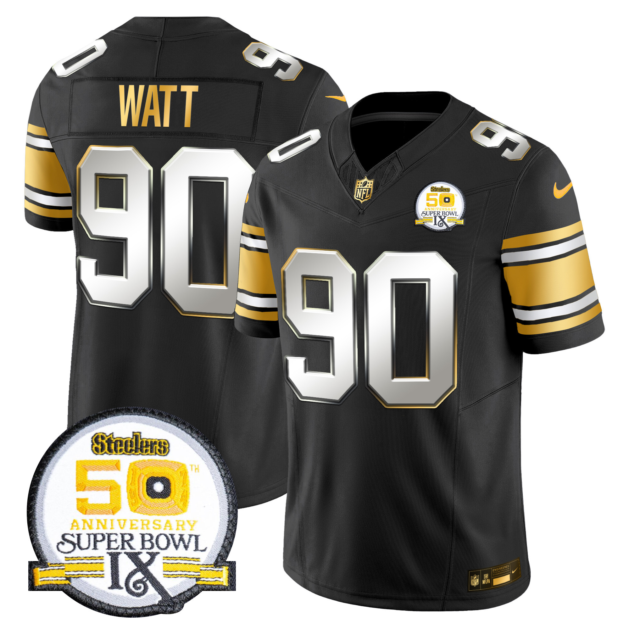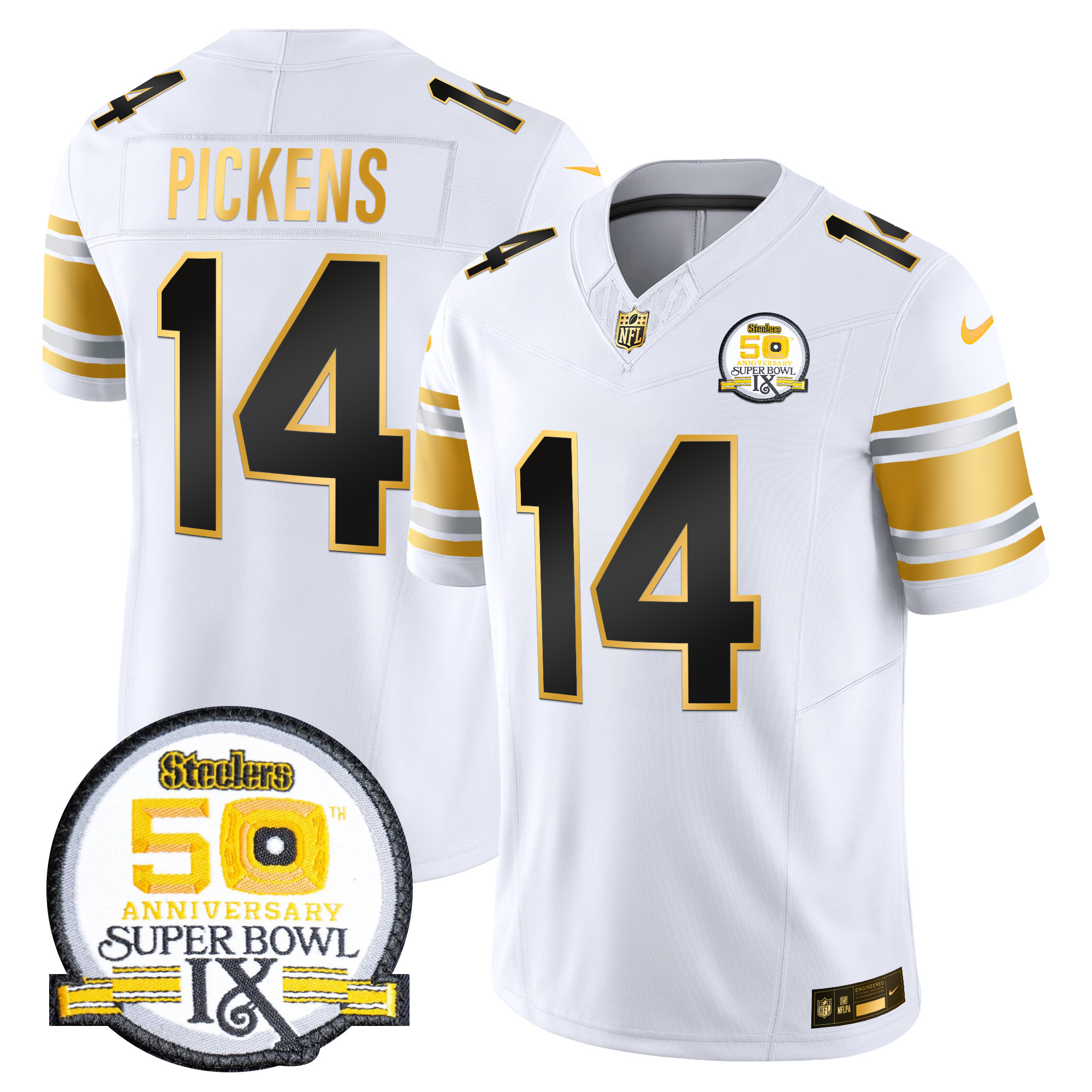 Men’s Steelers 50th Anniversary of Super Bowl IX Patch Gold Vapor Limited Jersey – All Stitched
