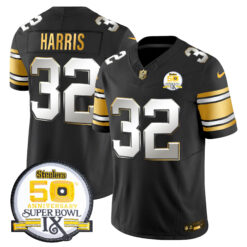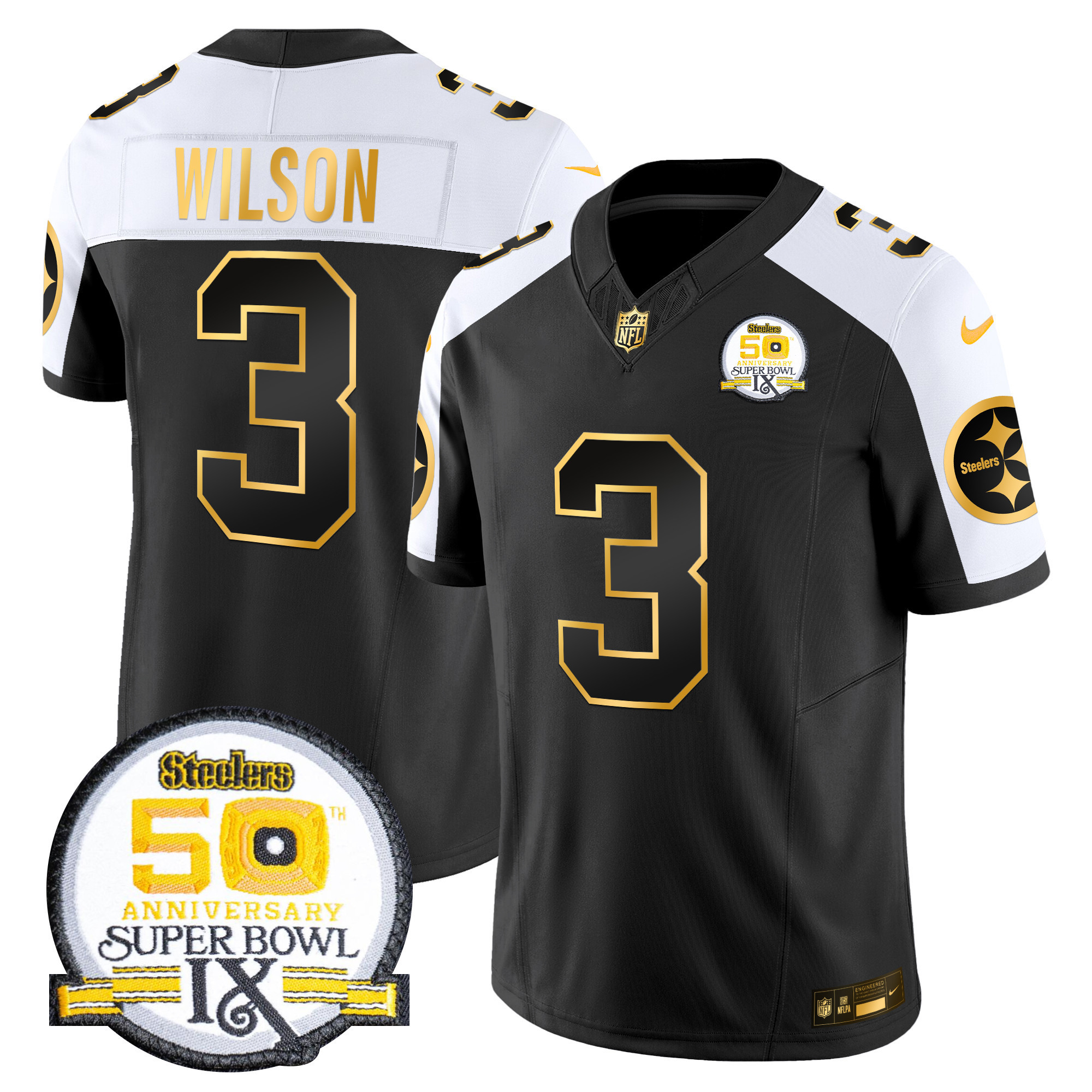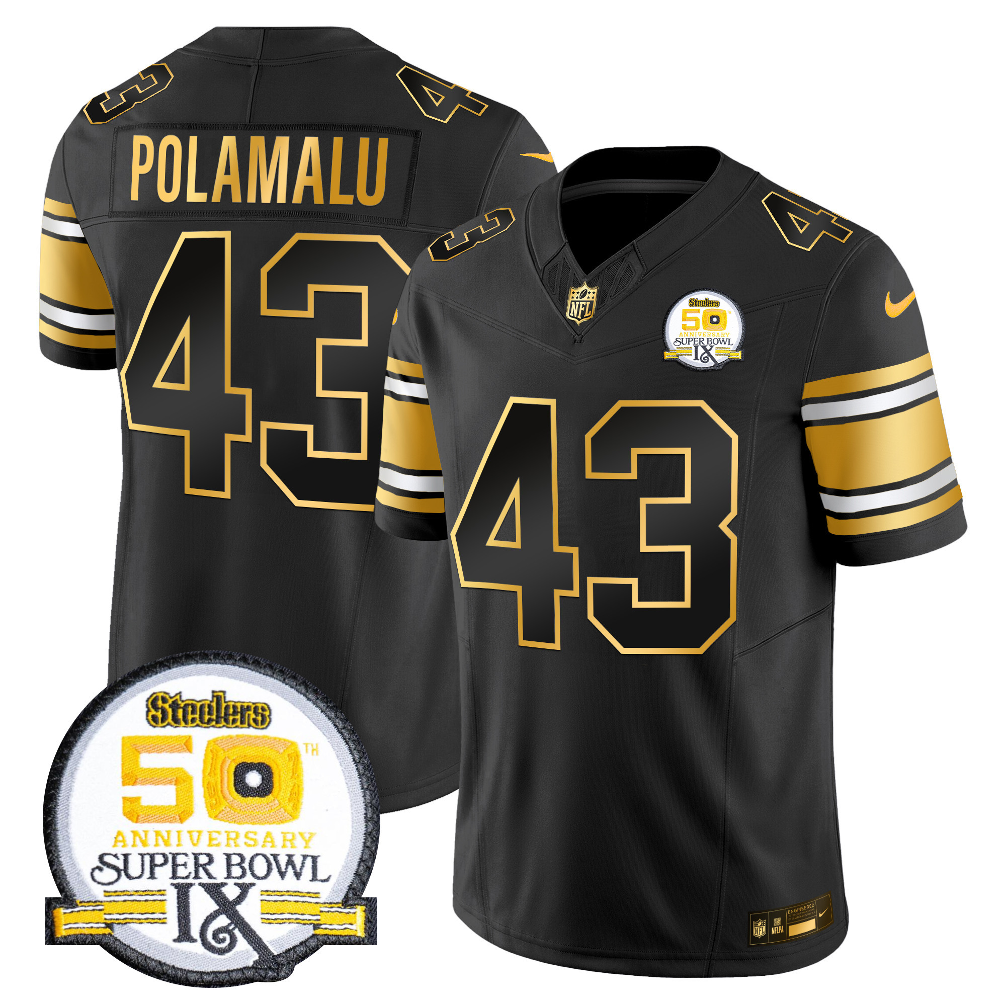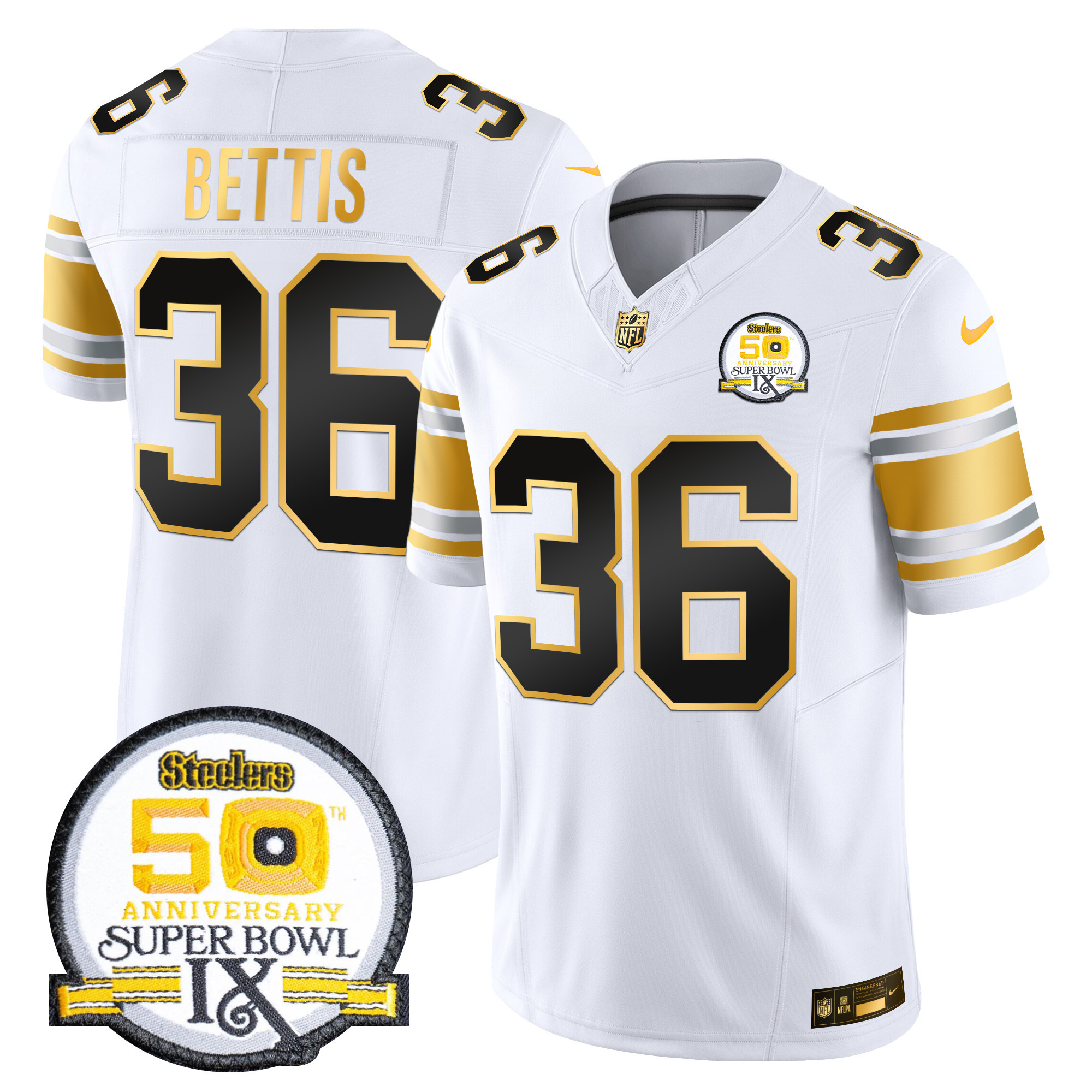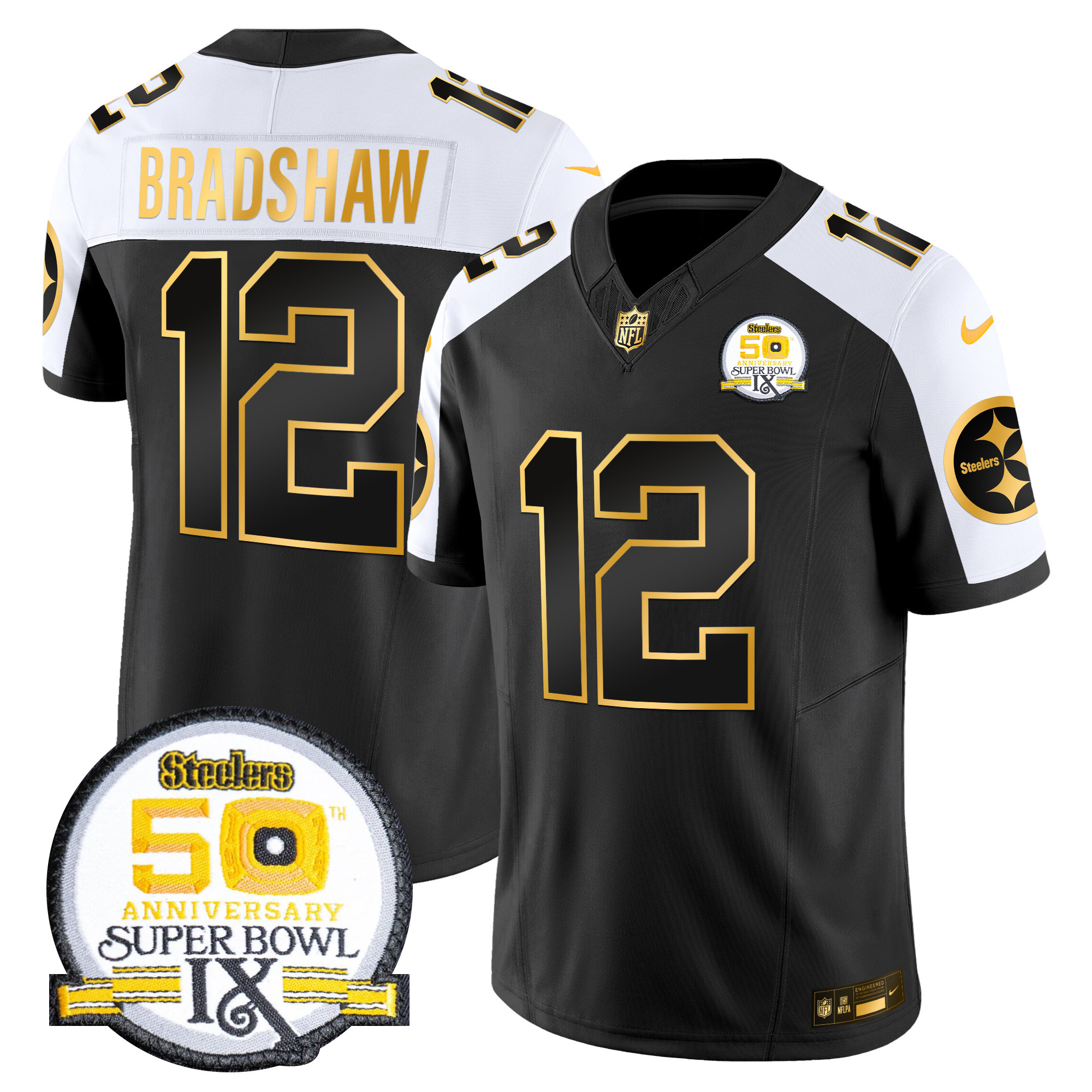 Men’s Steelers 50th Anniversary of Super Bowl IX Patch Gold Vapor Limited Jersey – All Stitched
