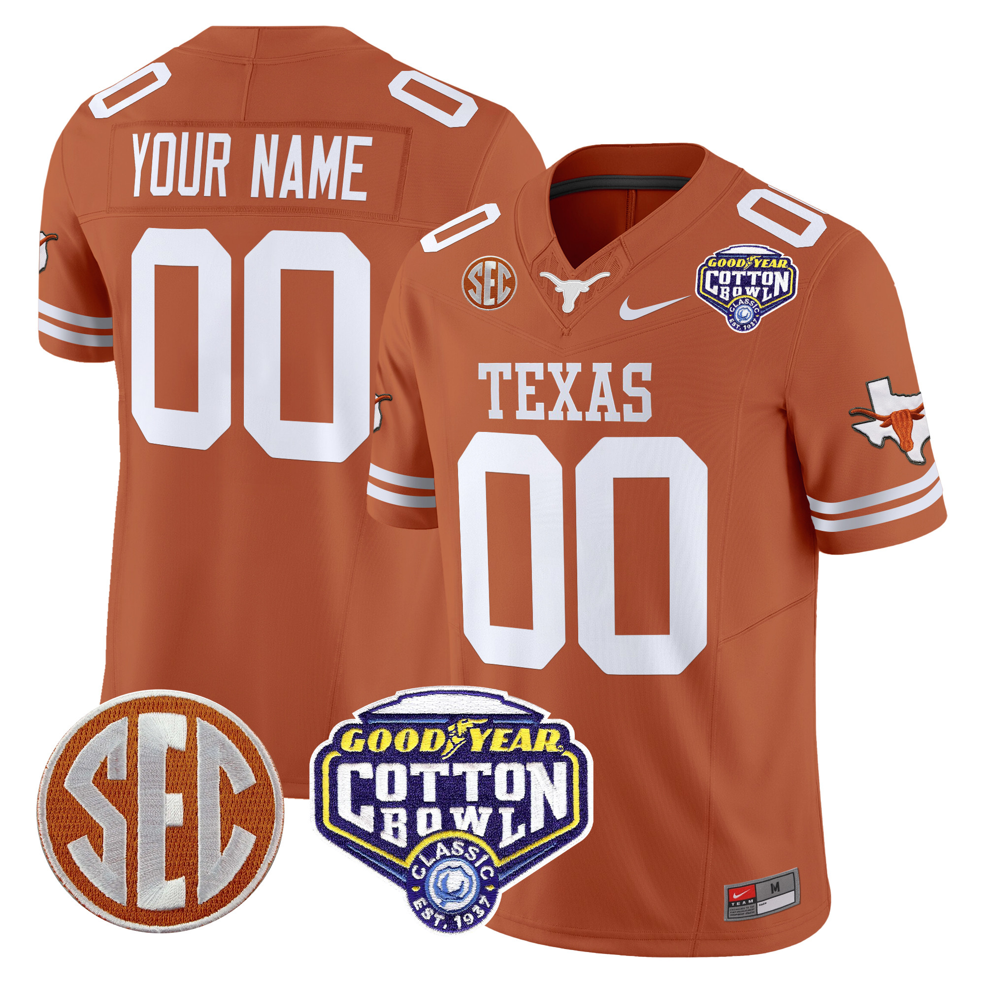 Texas Longhorns Cotton Bowl Patch Vapor Limited Custom Jersey – All Stitched