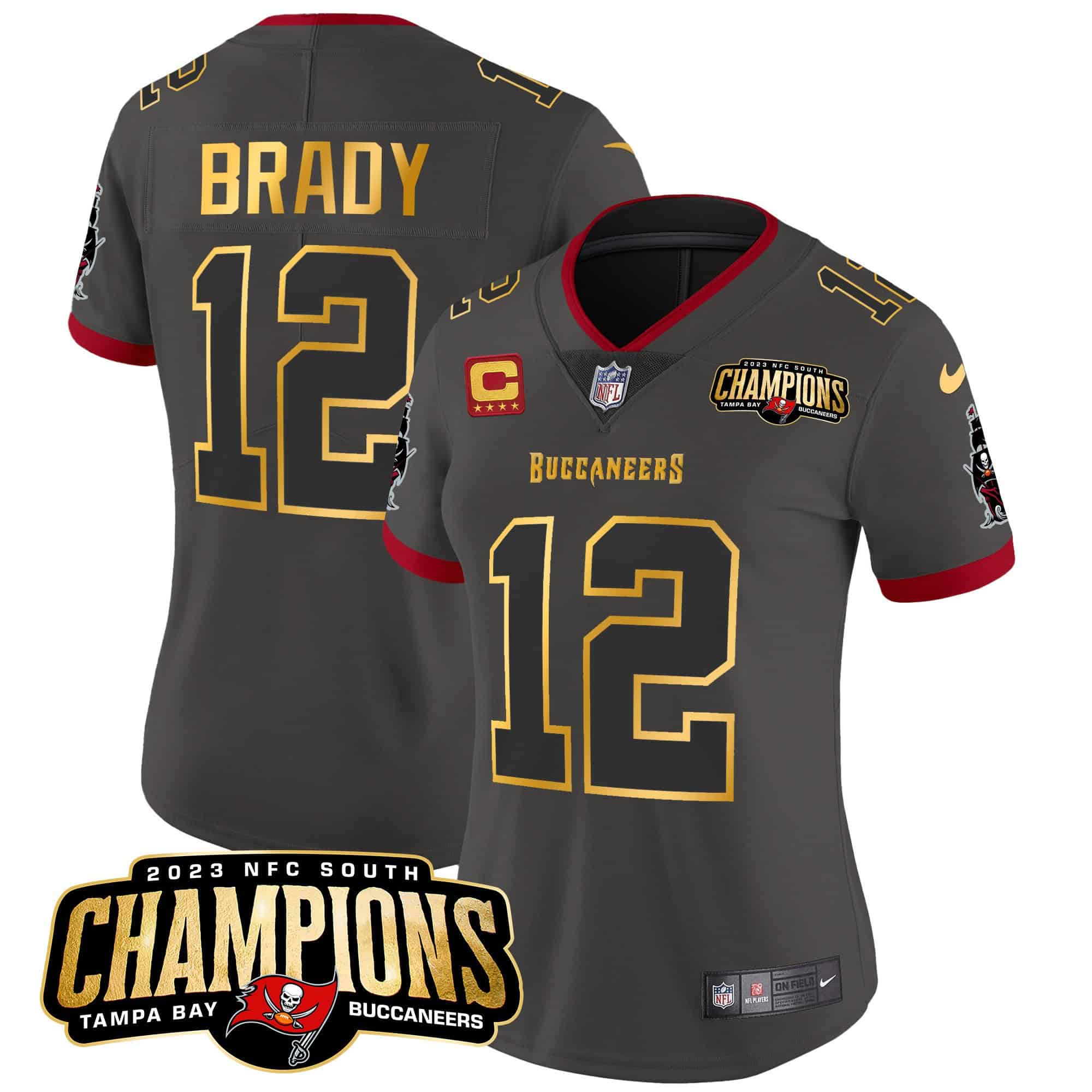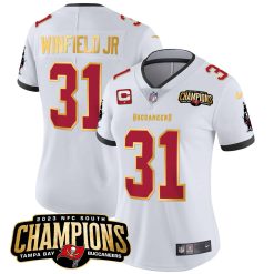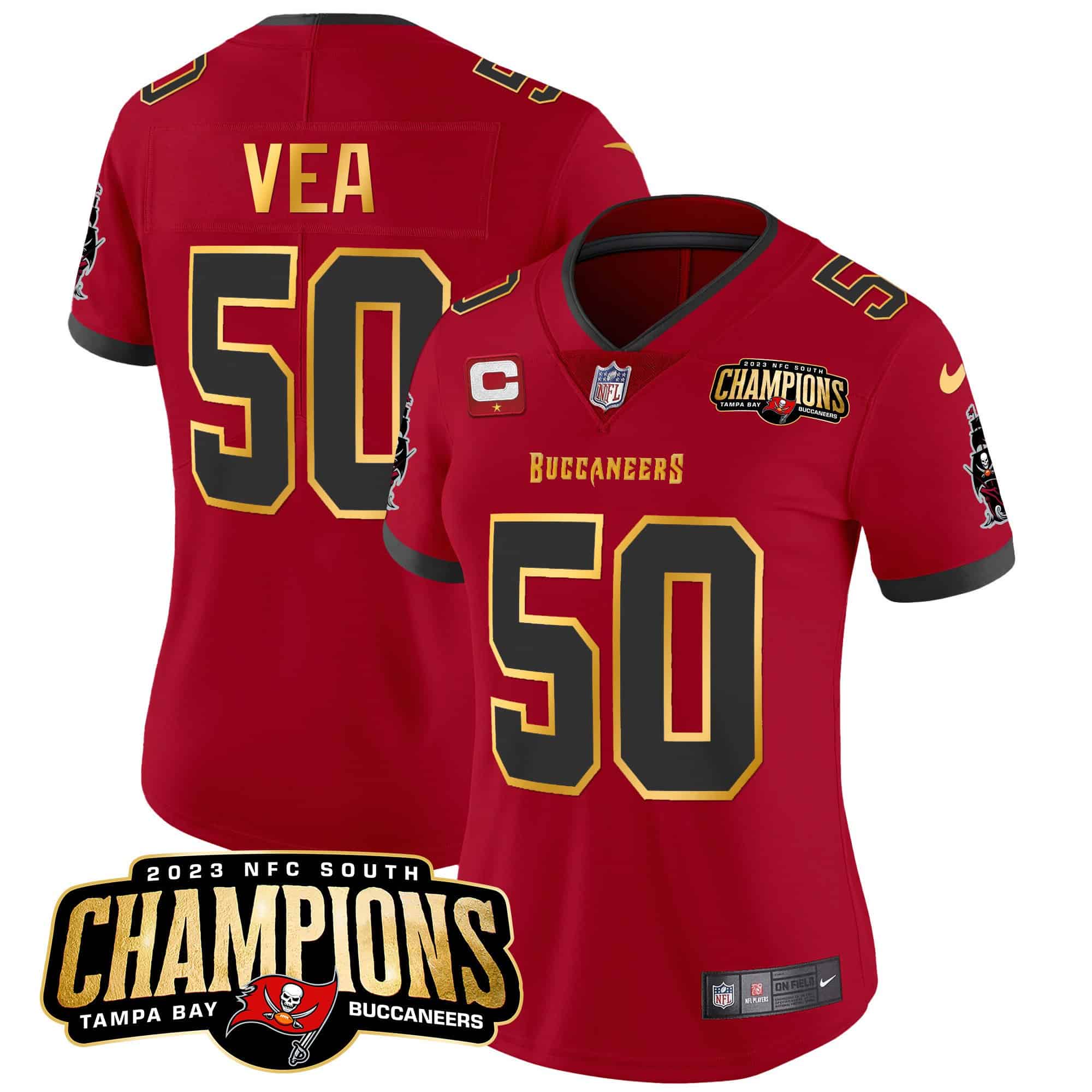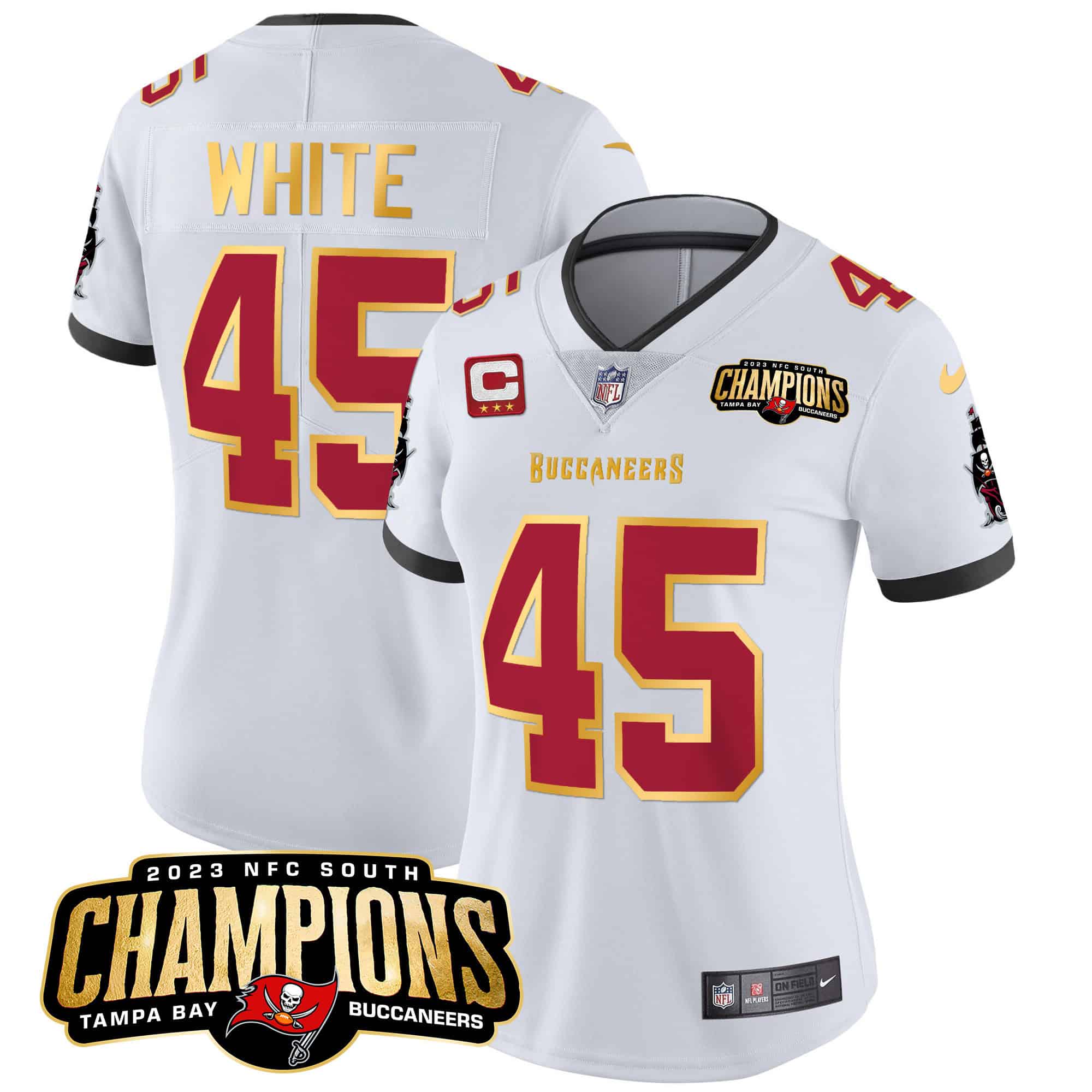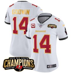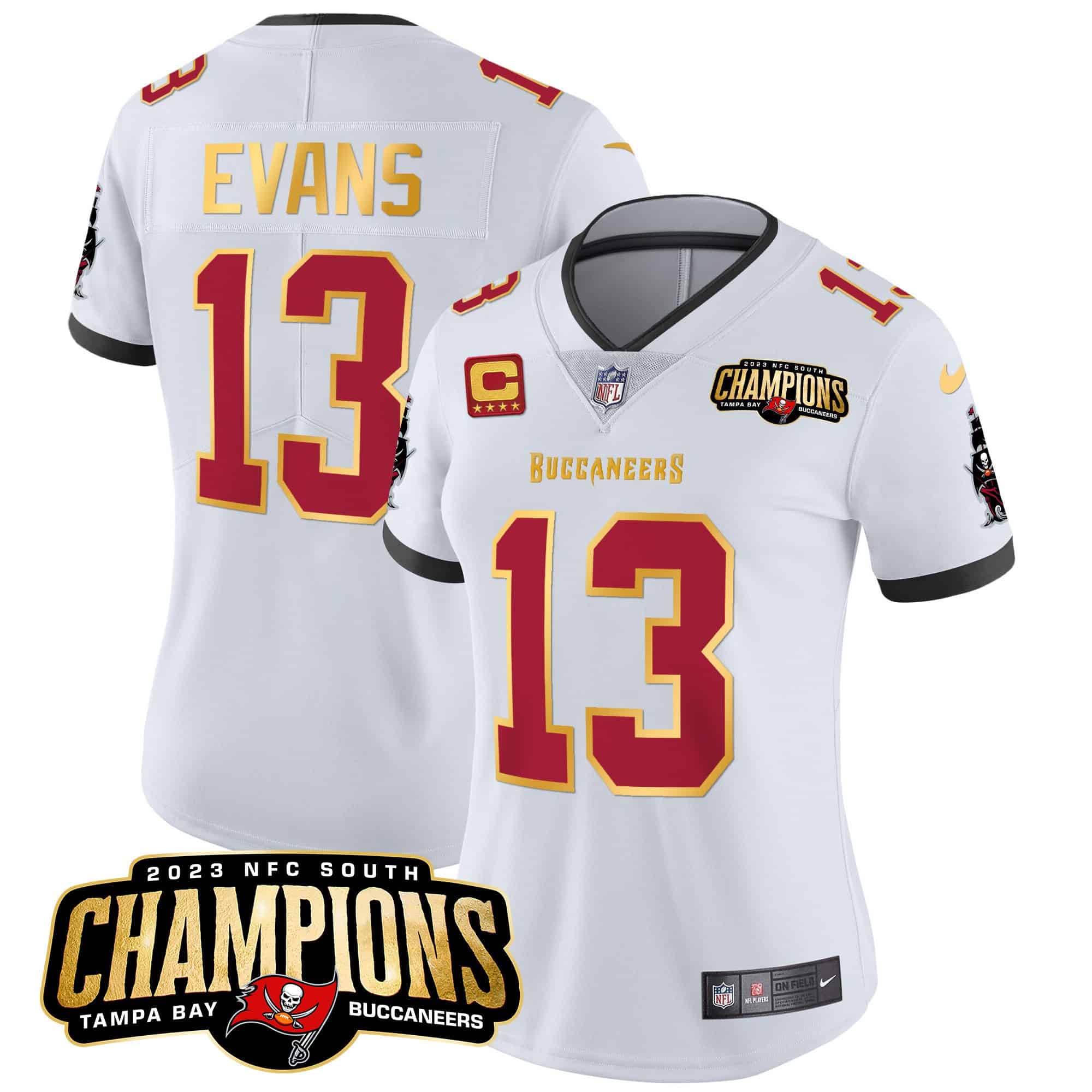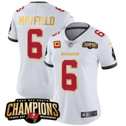 Women’s Buccaneers 2023 NFC South Champions Patch Gold Trim Vapor Jersey – All Stitched