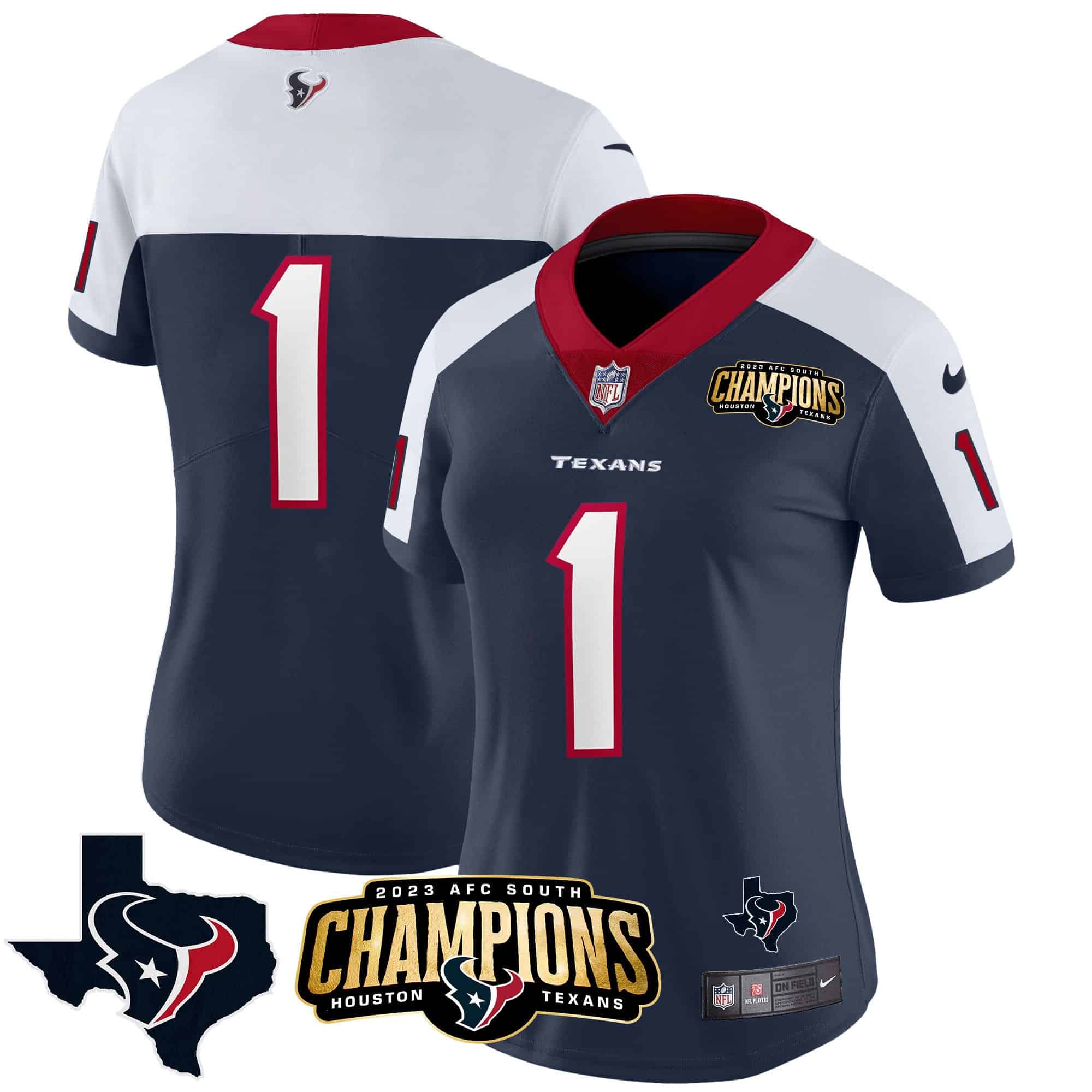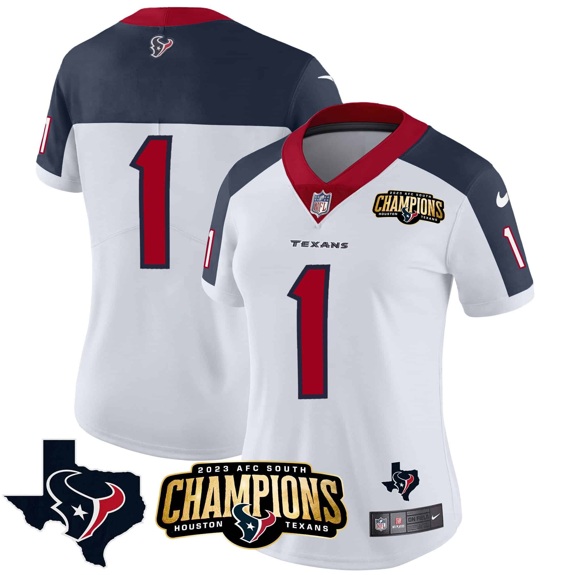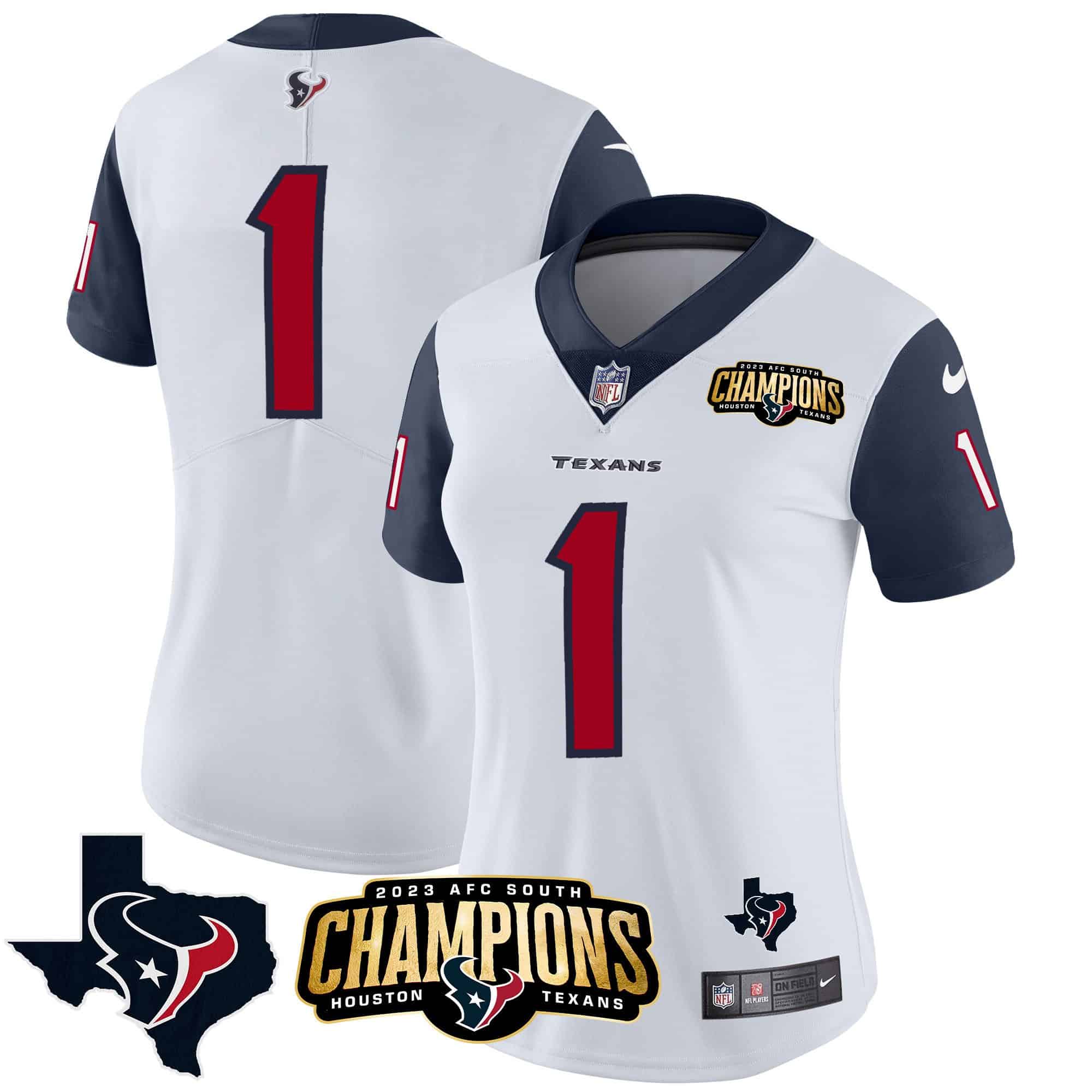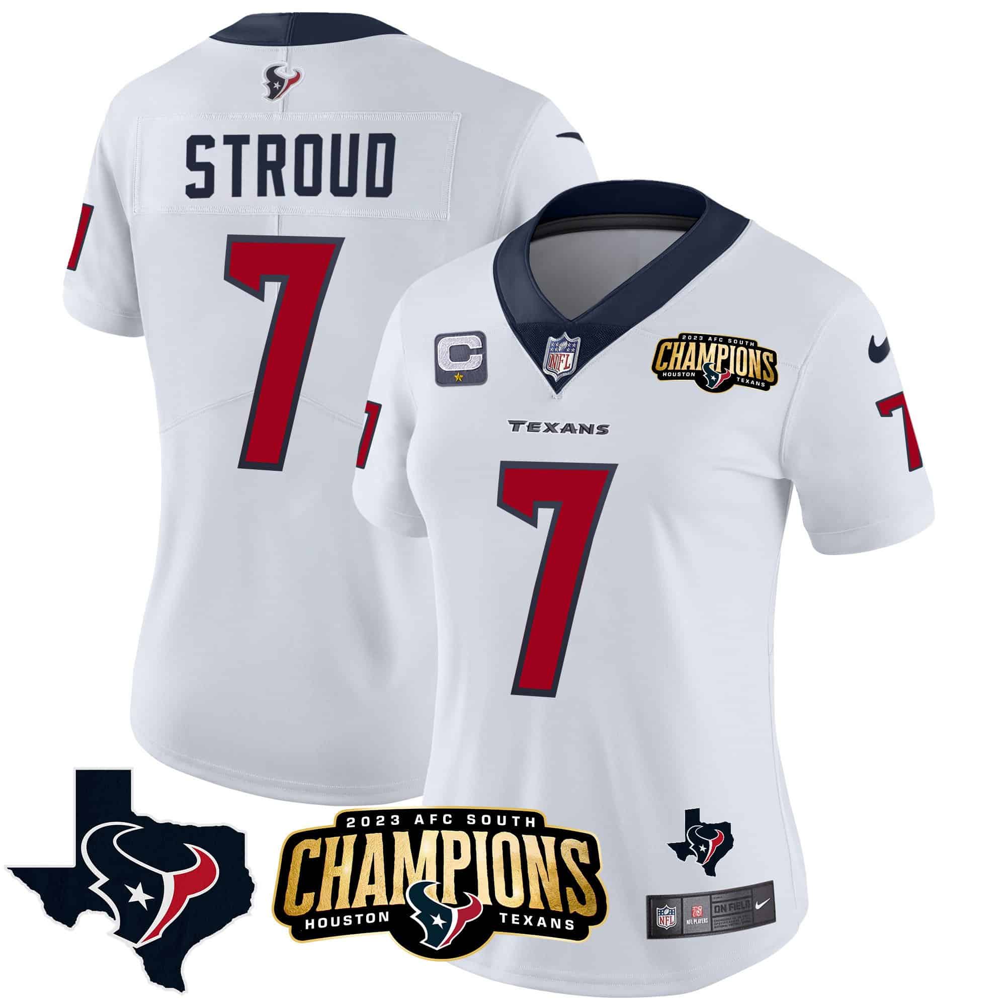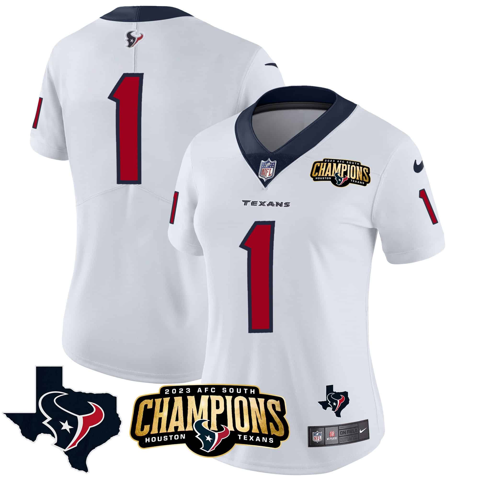 Women’s Houston Texans 2023 AFC South Champions Patch Vapor Jersey – All Stitched