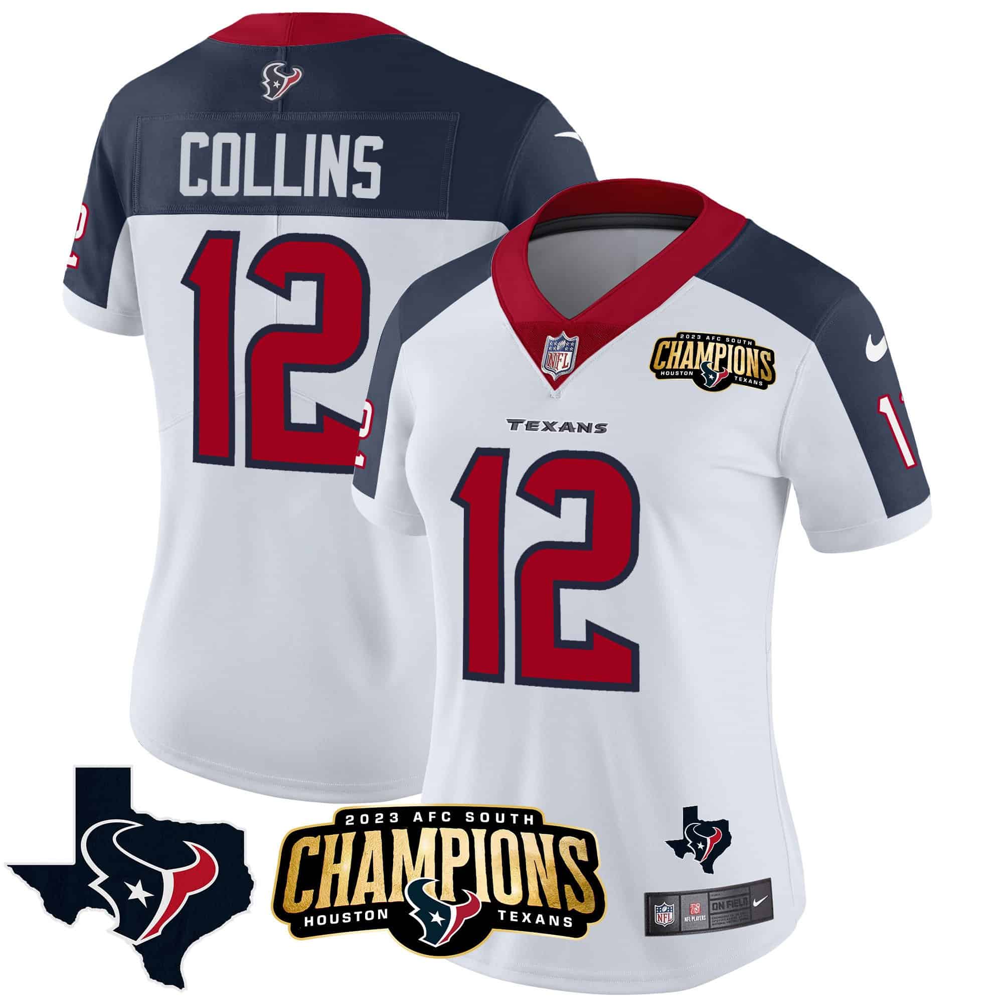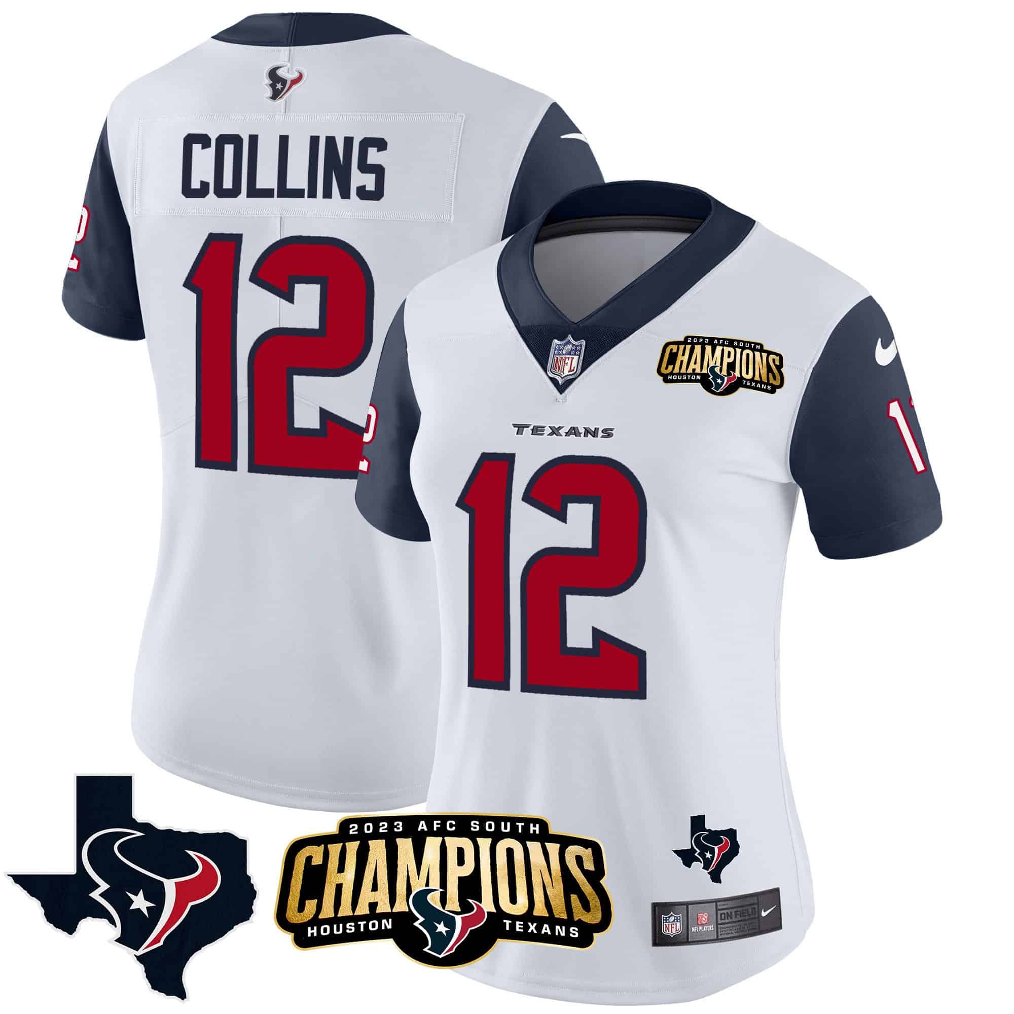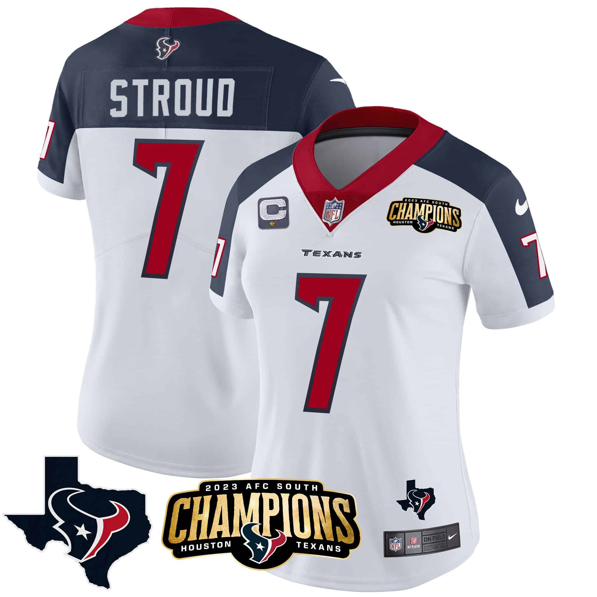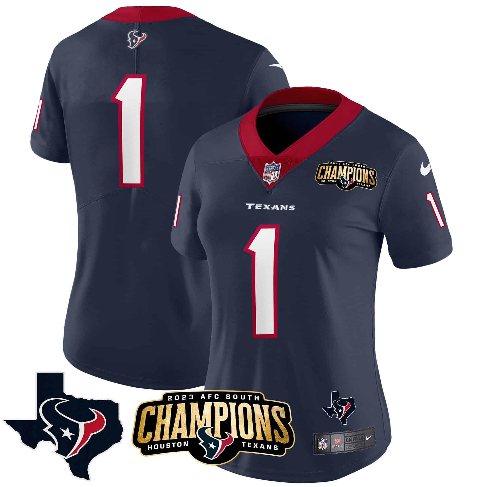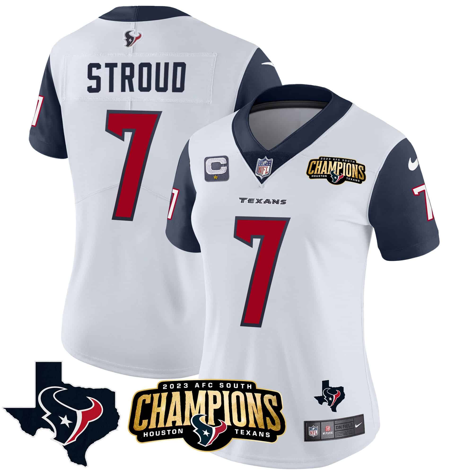 Women’s Houston Texans 2023 AFC South Champions Patch Vapor Jersey – All Stitched