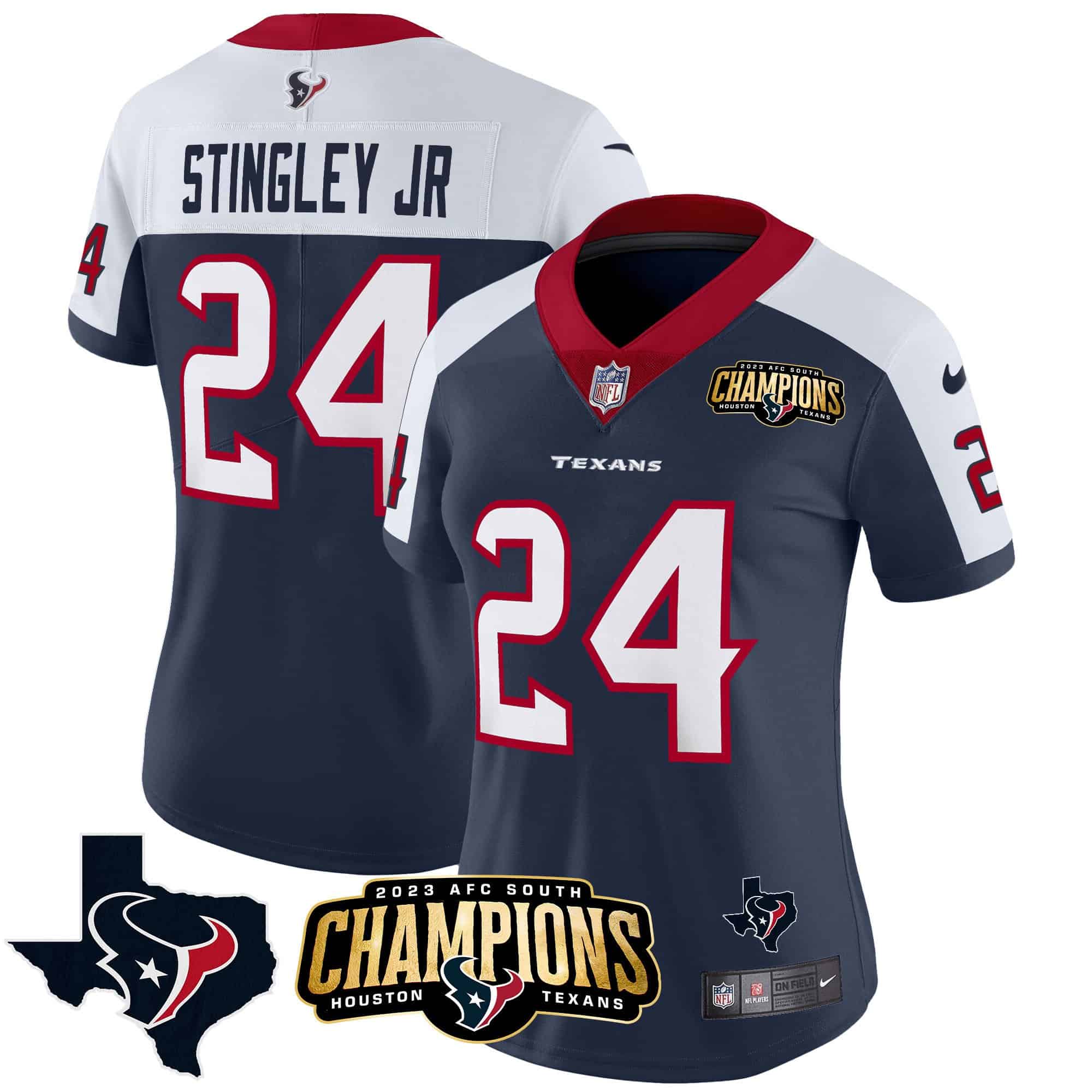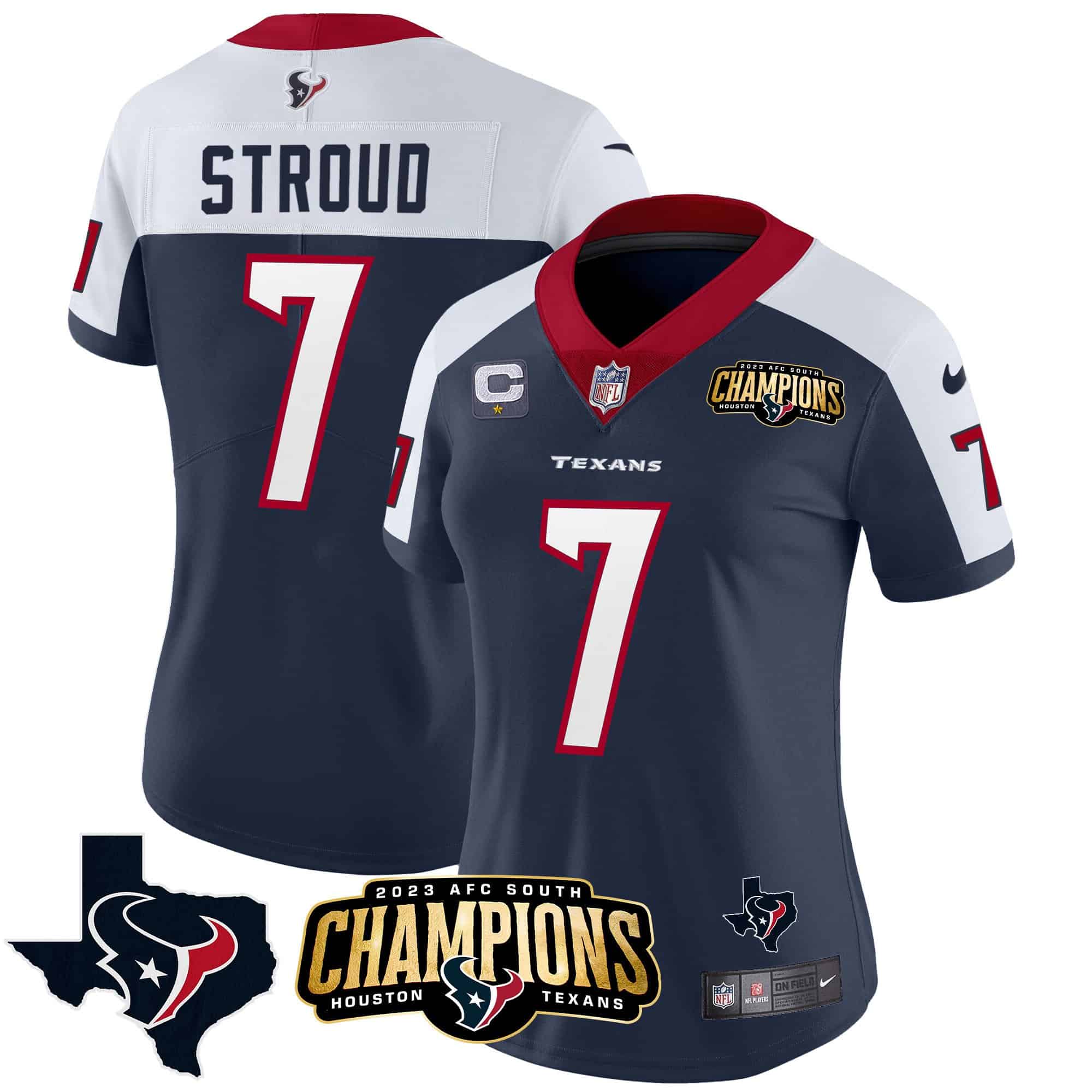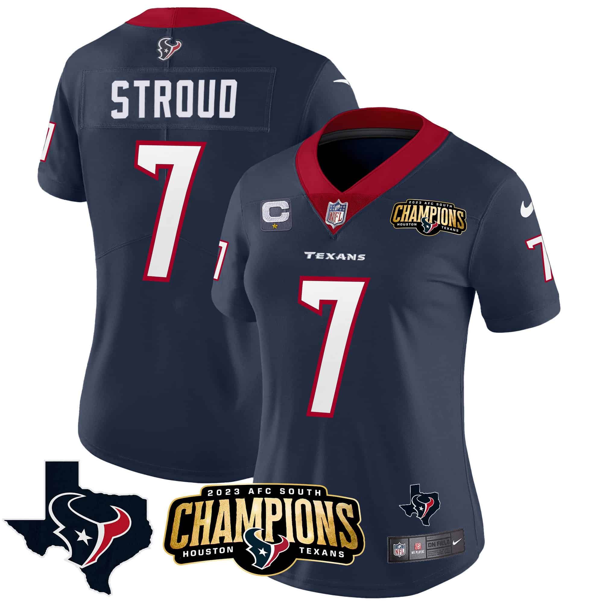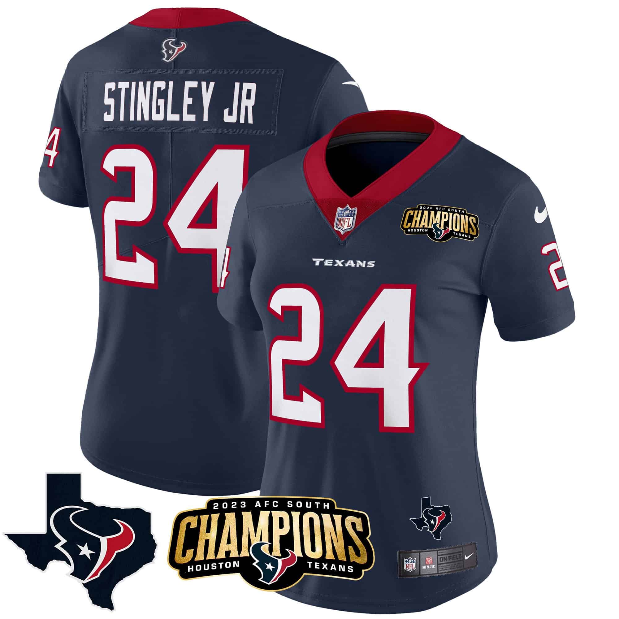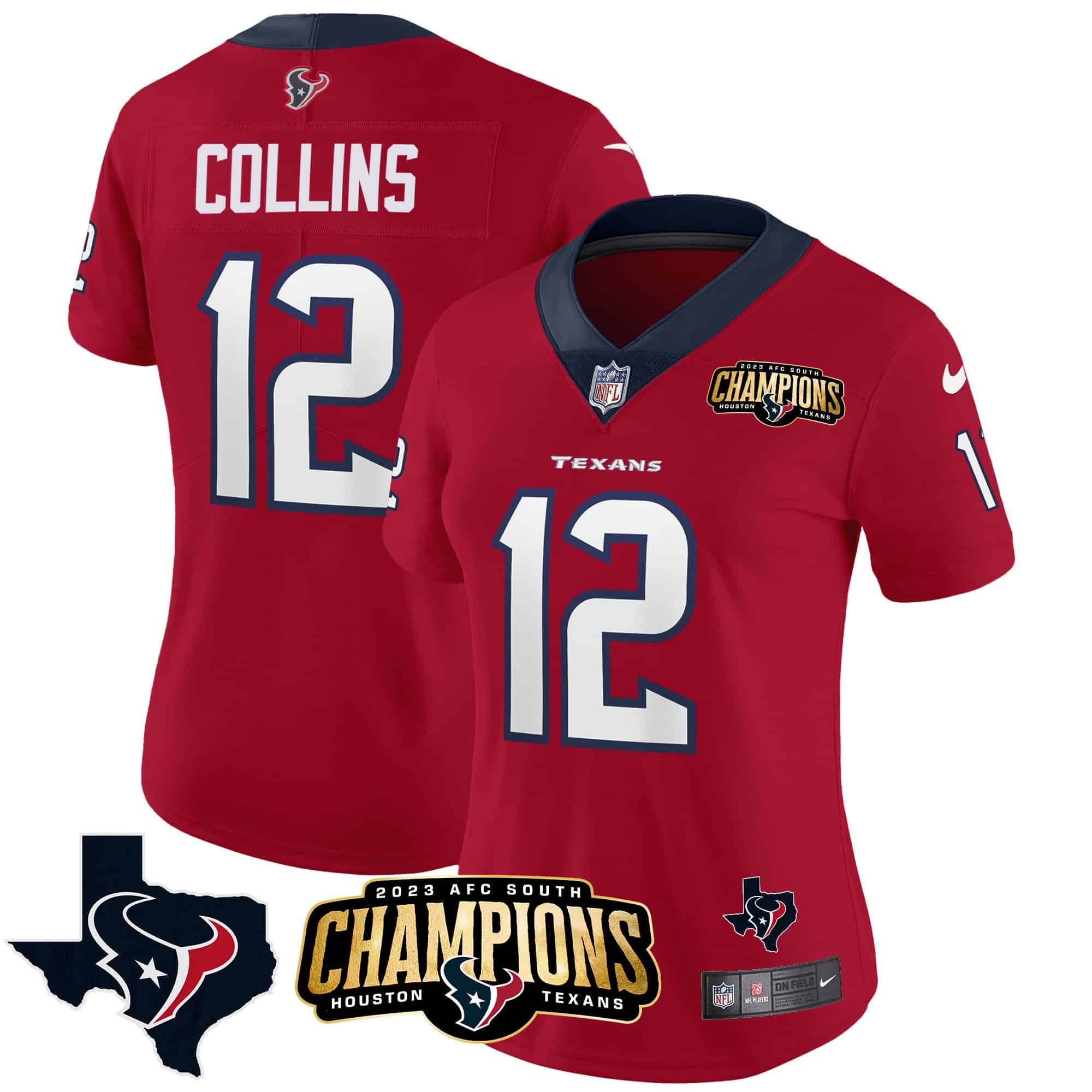 Women’s Houston Texans 2023 AFC South Champions Patch Vapor Jersey – All Stitched