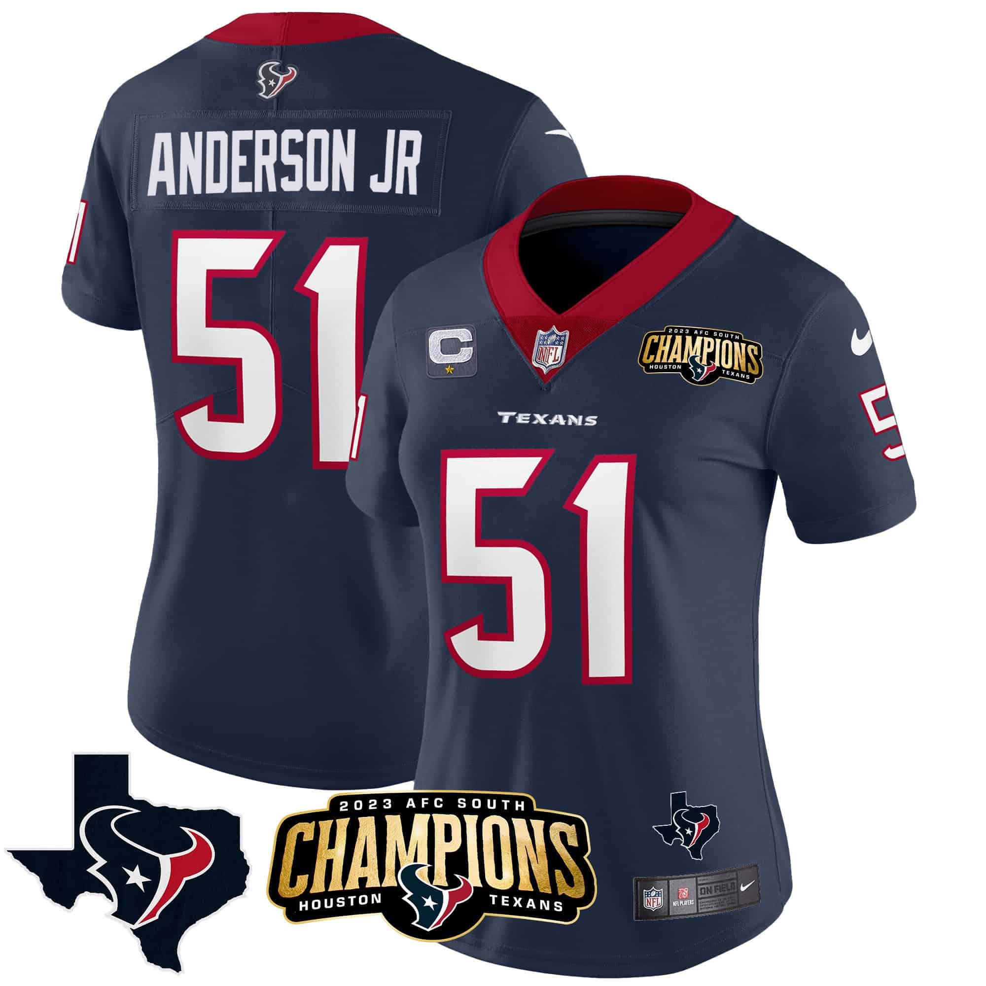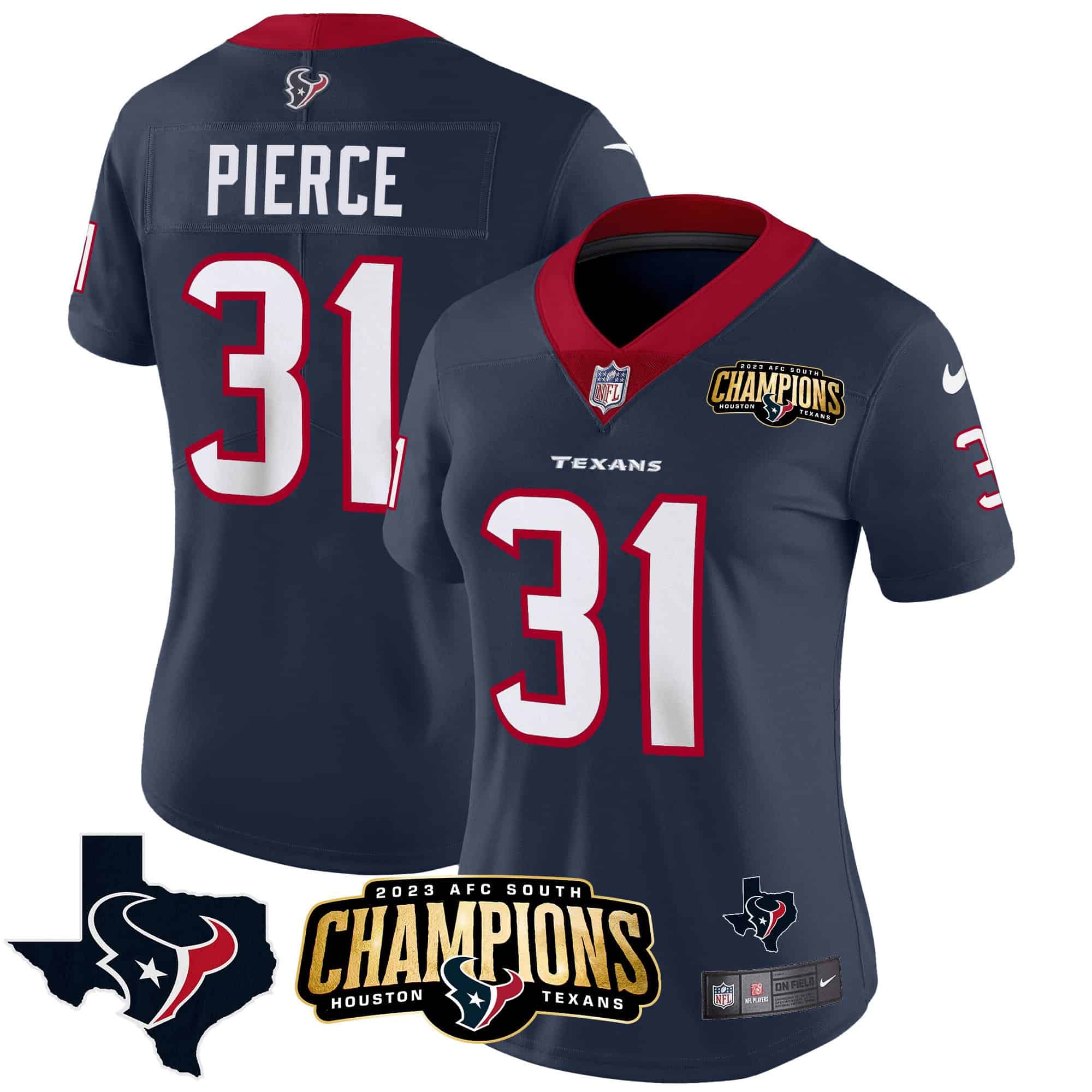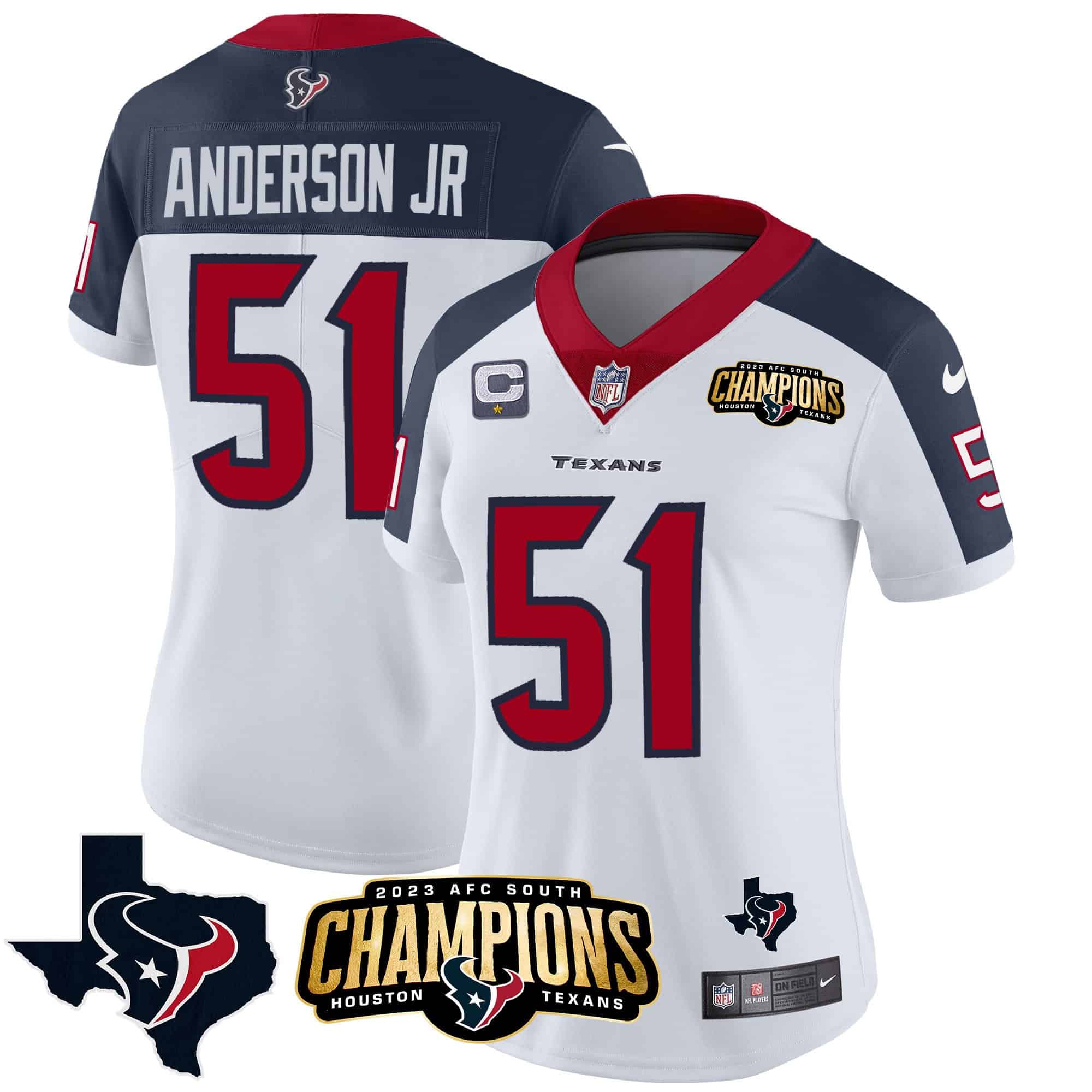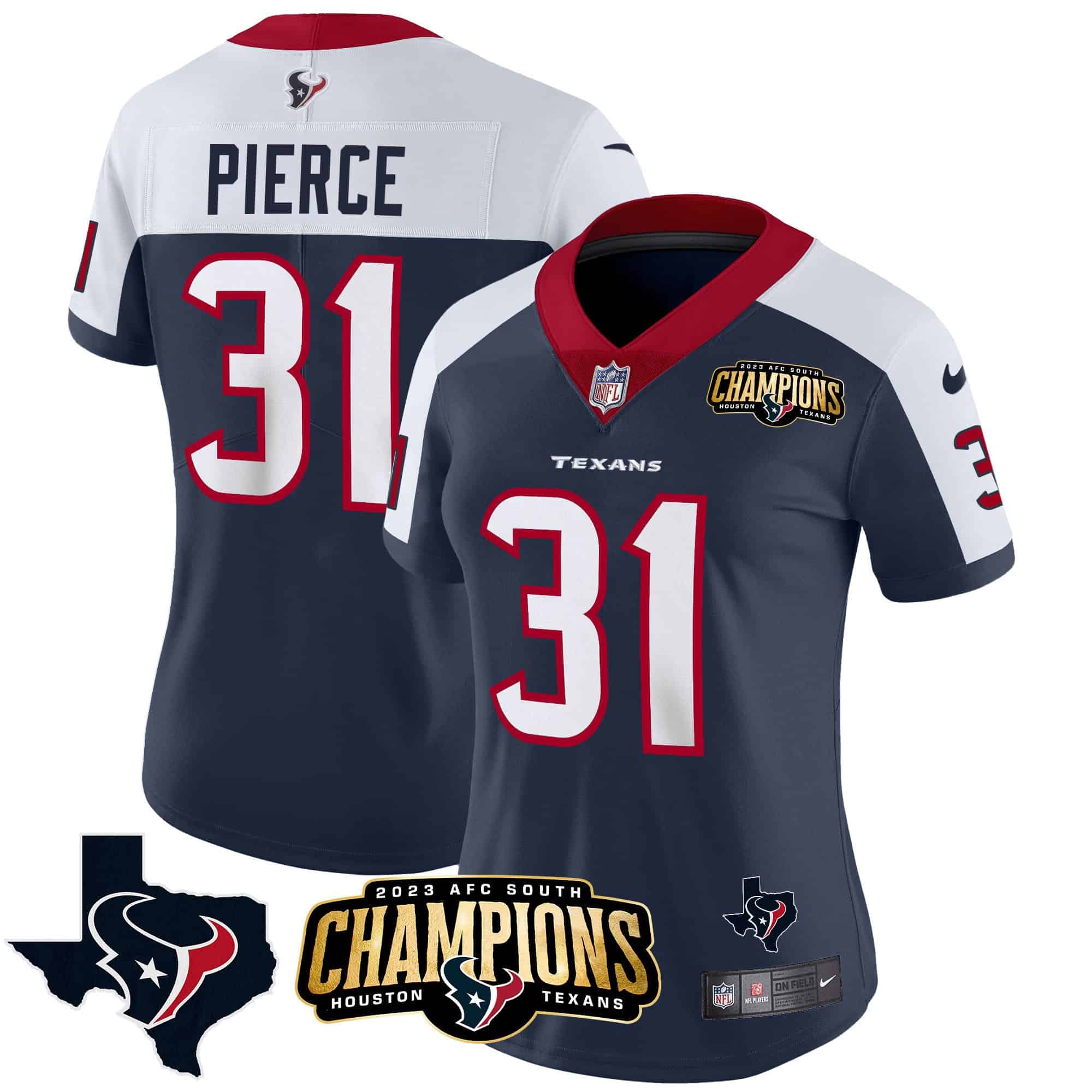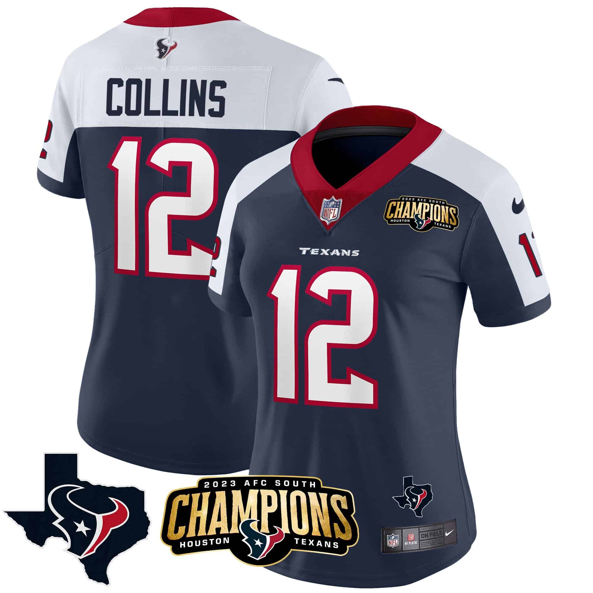Women’s Houston Texans 2023 AFC South Champions Patch Vapor Jersey – All Stitched