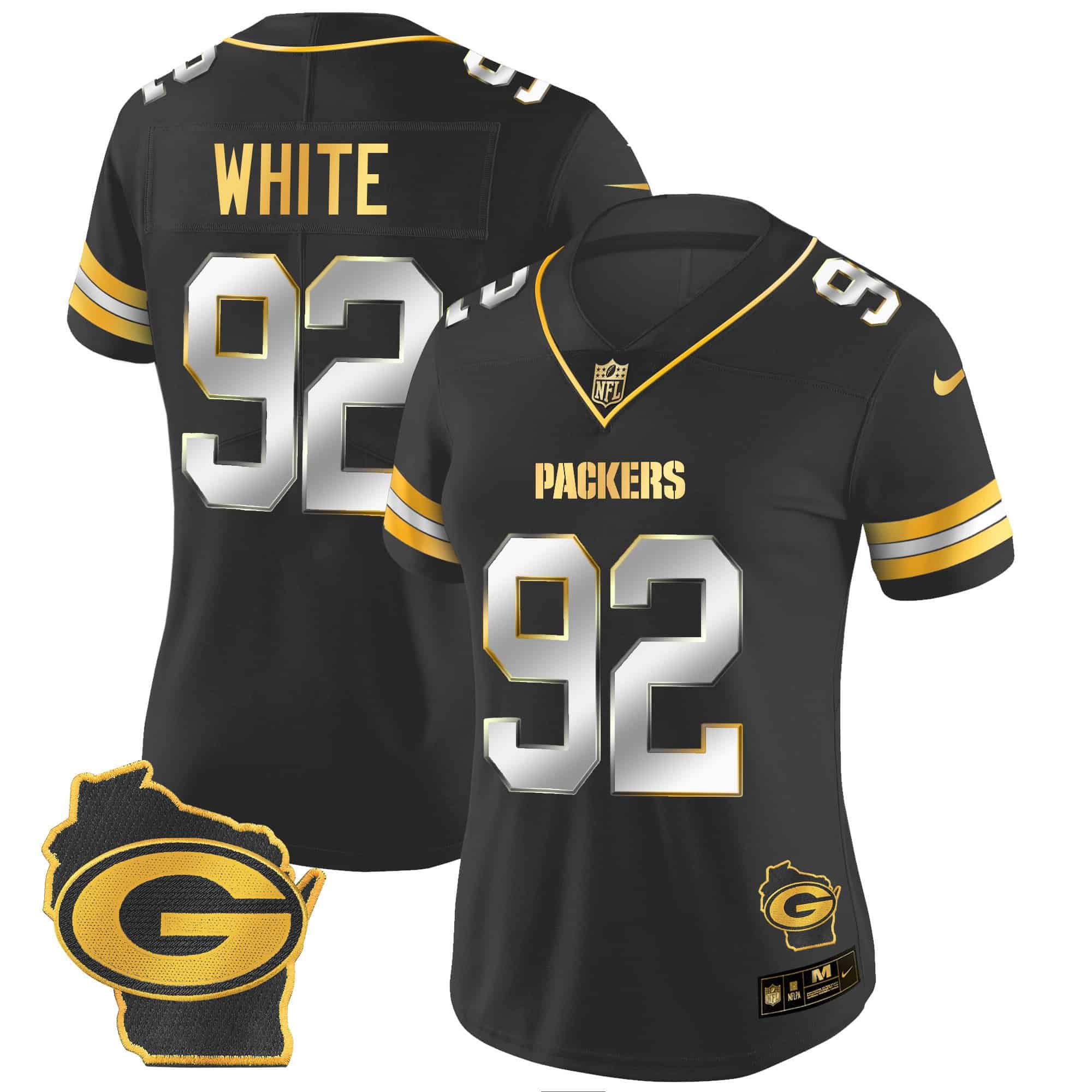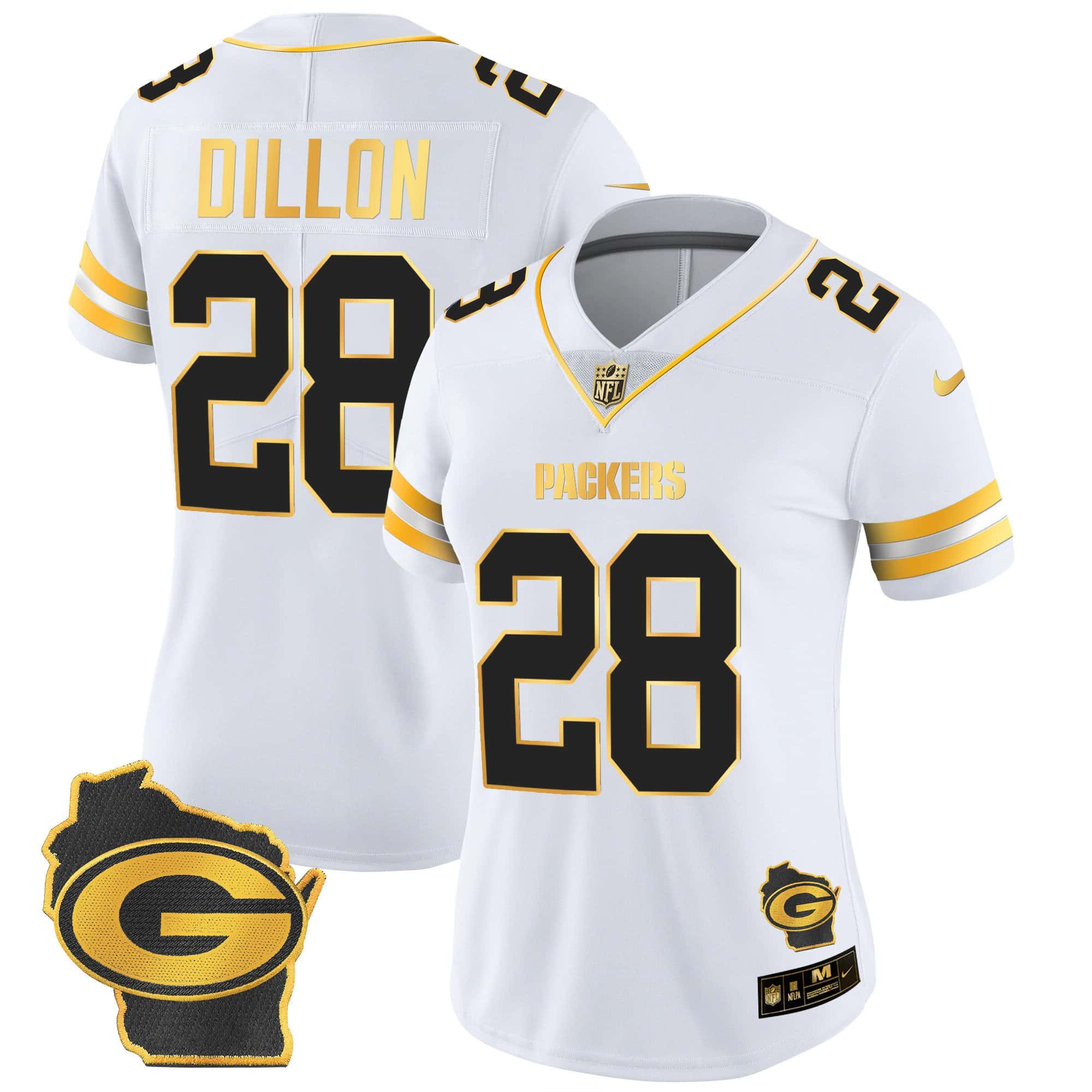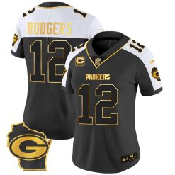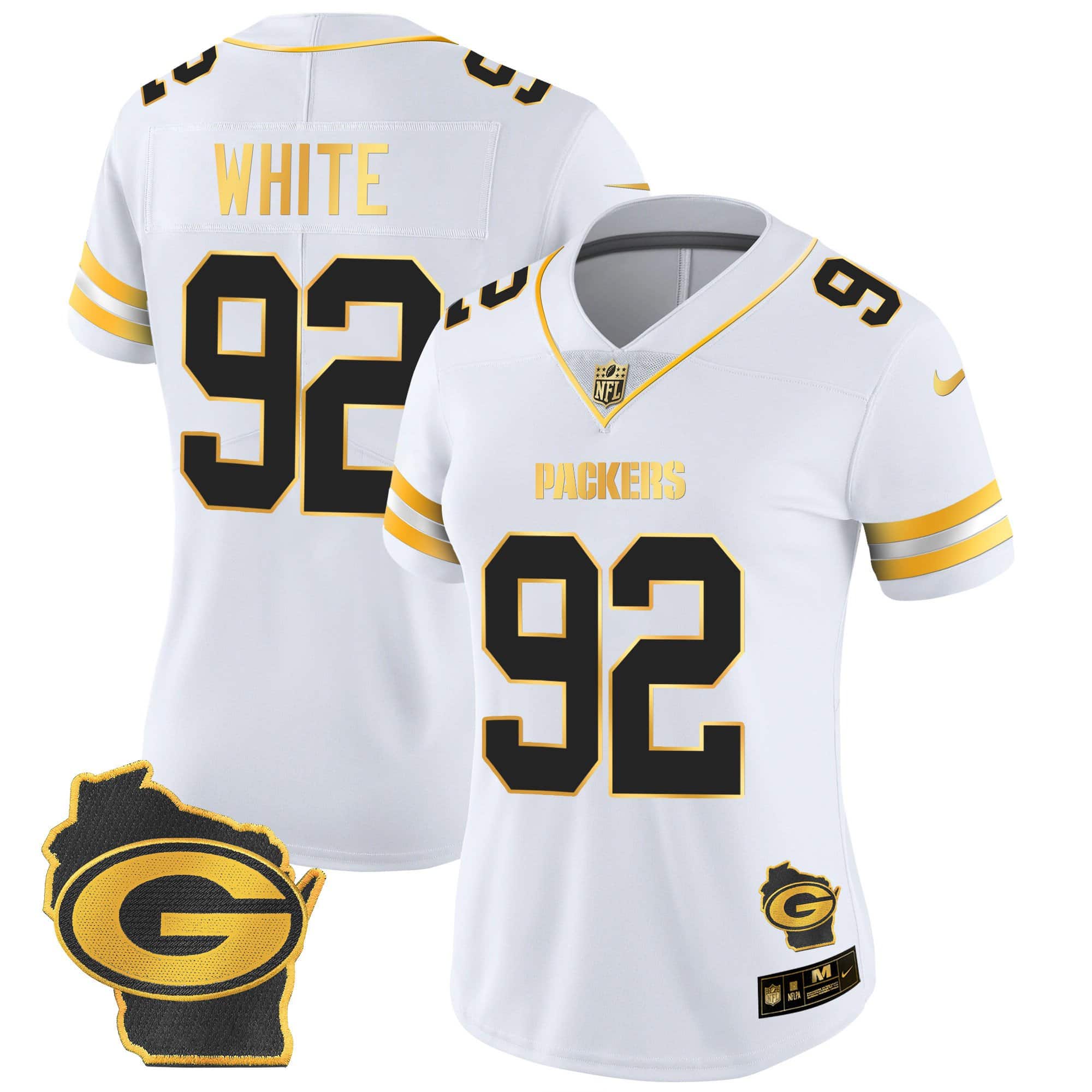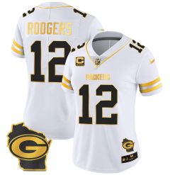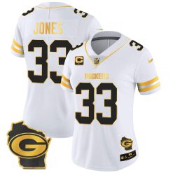 Women’s Packers Home Patch Gold Vapor Jersey – All Stitched