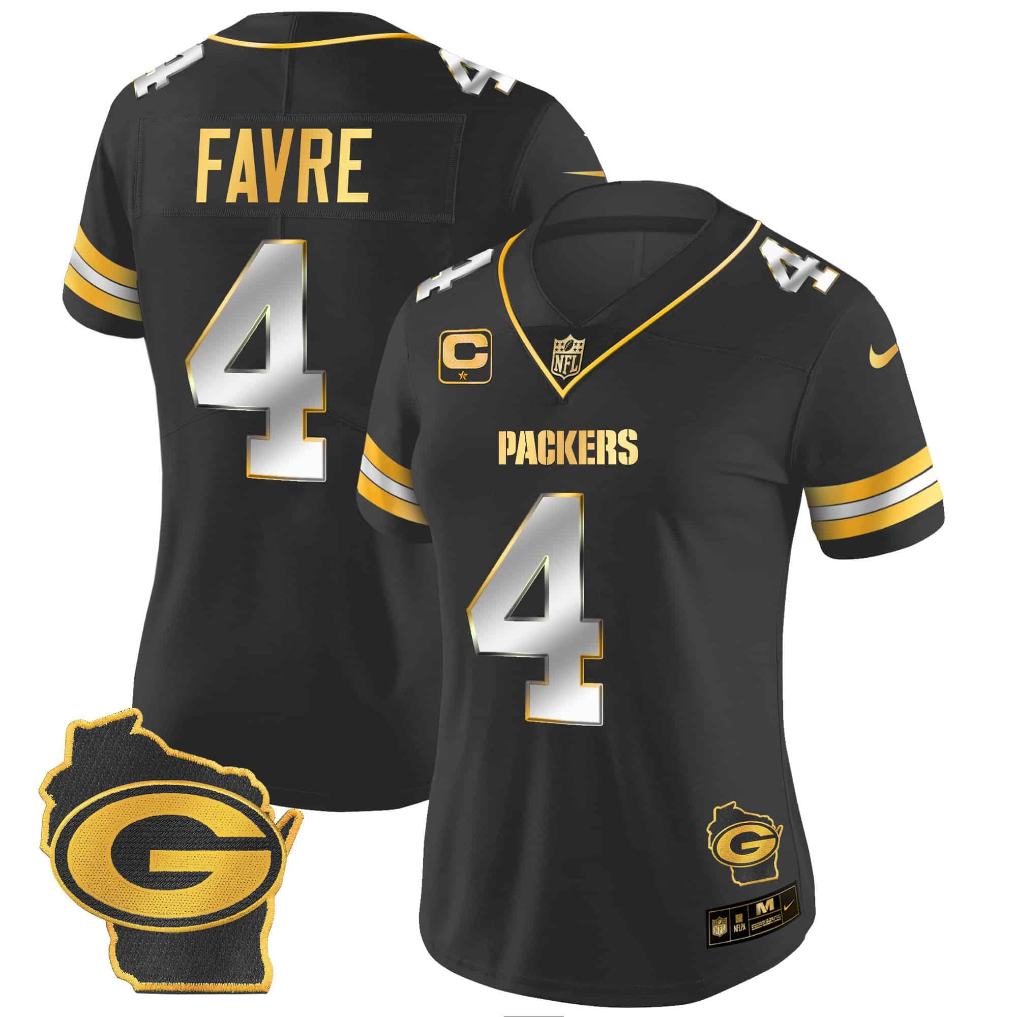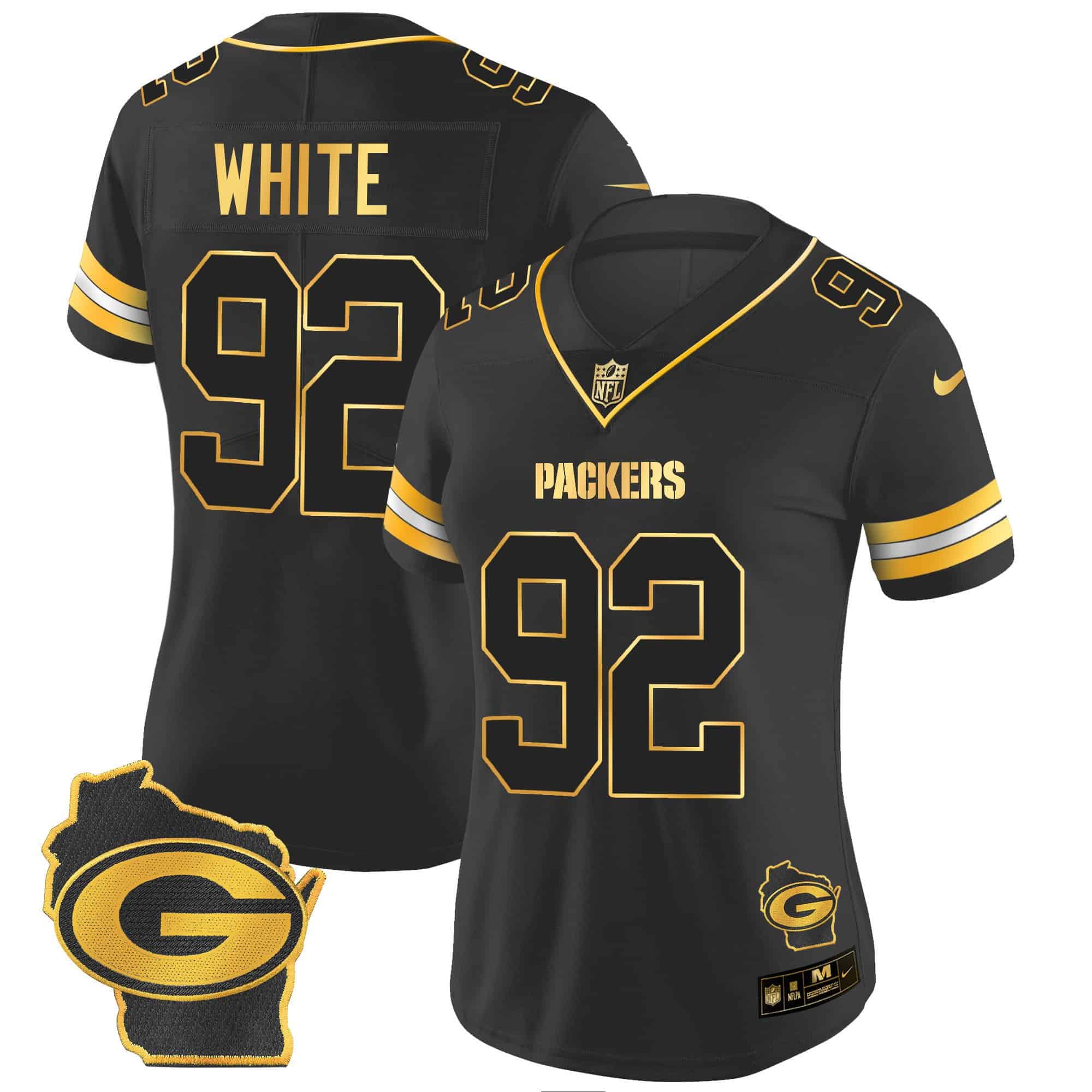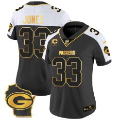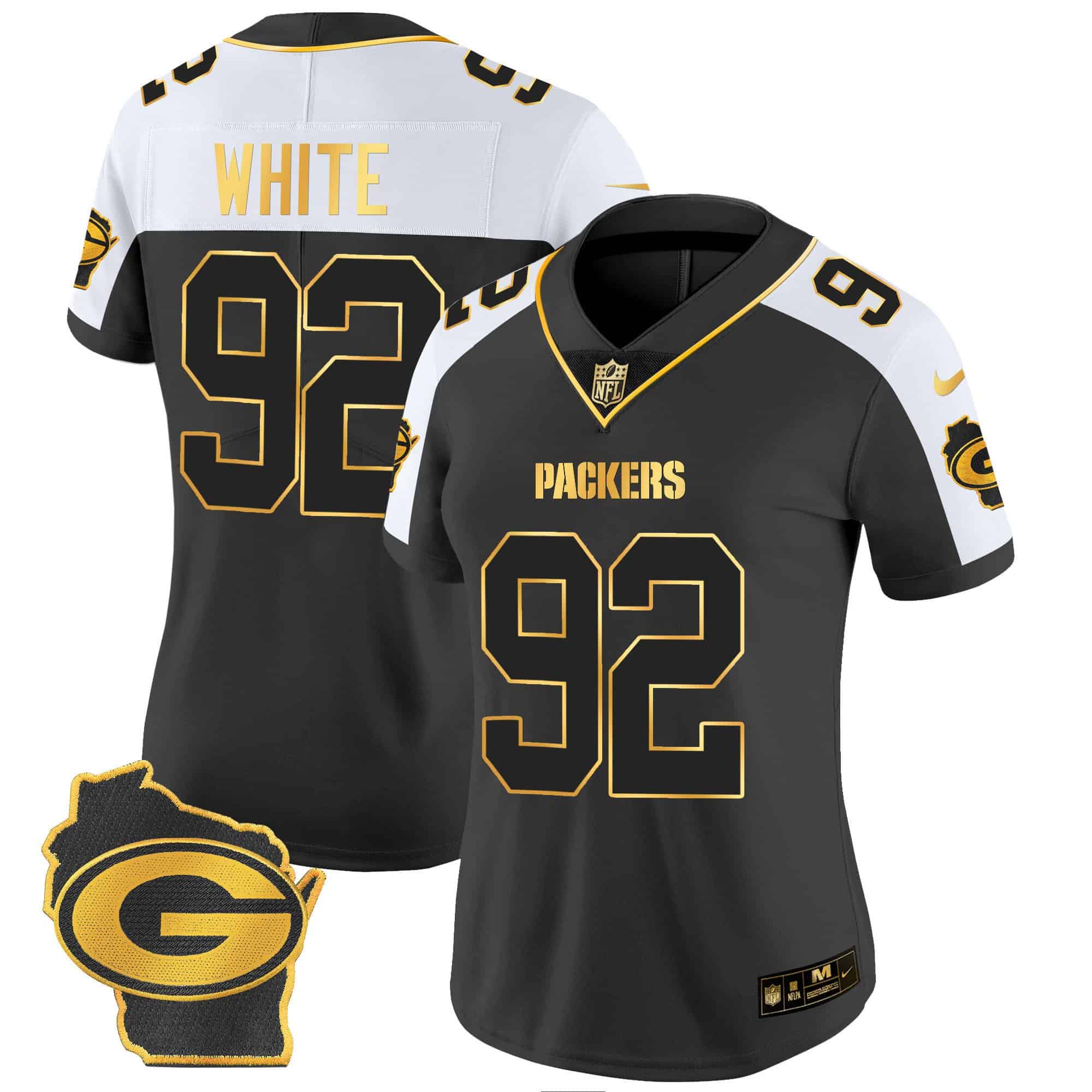 Women’s Packers Home Patch Gold Vapor Jersey – All Stitched
