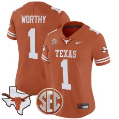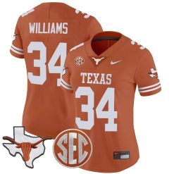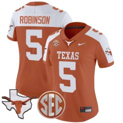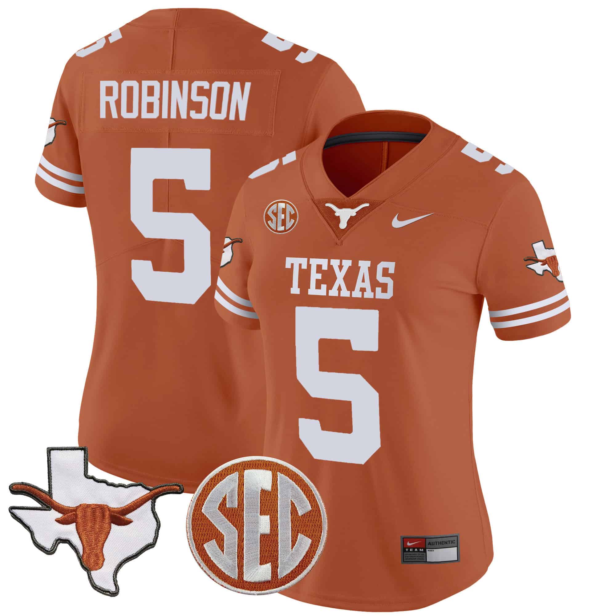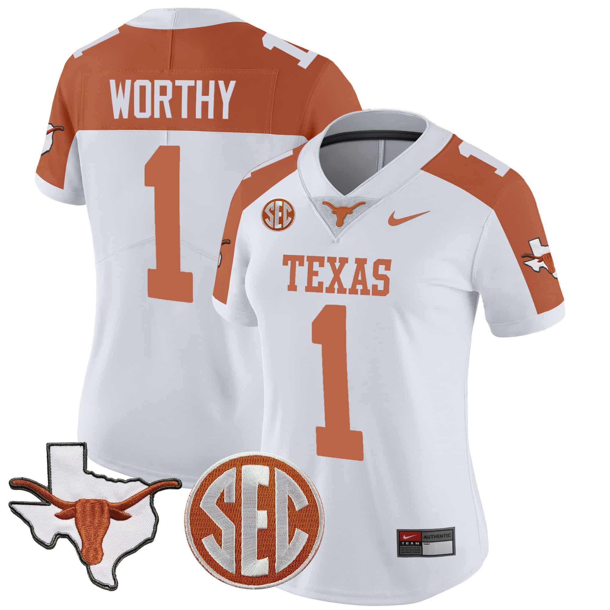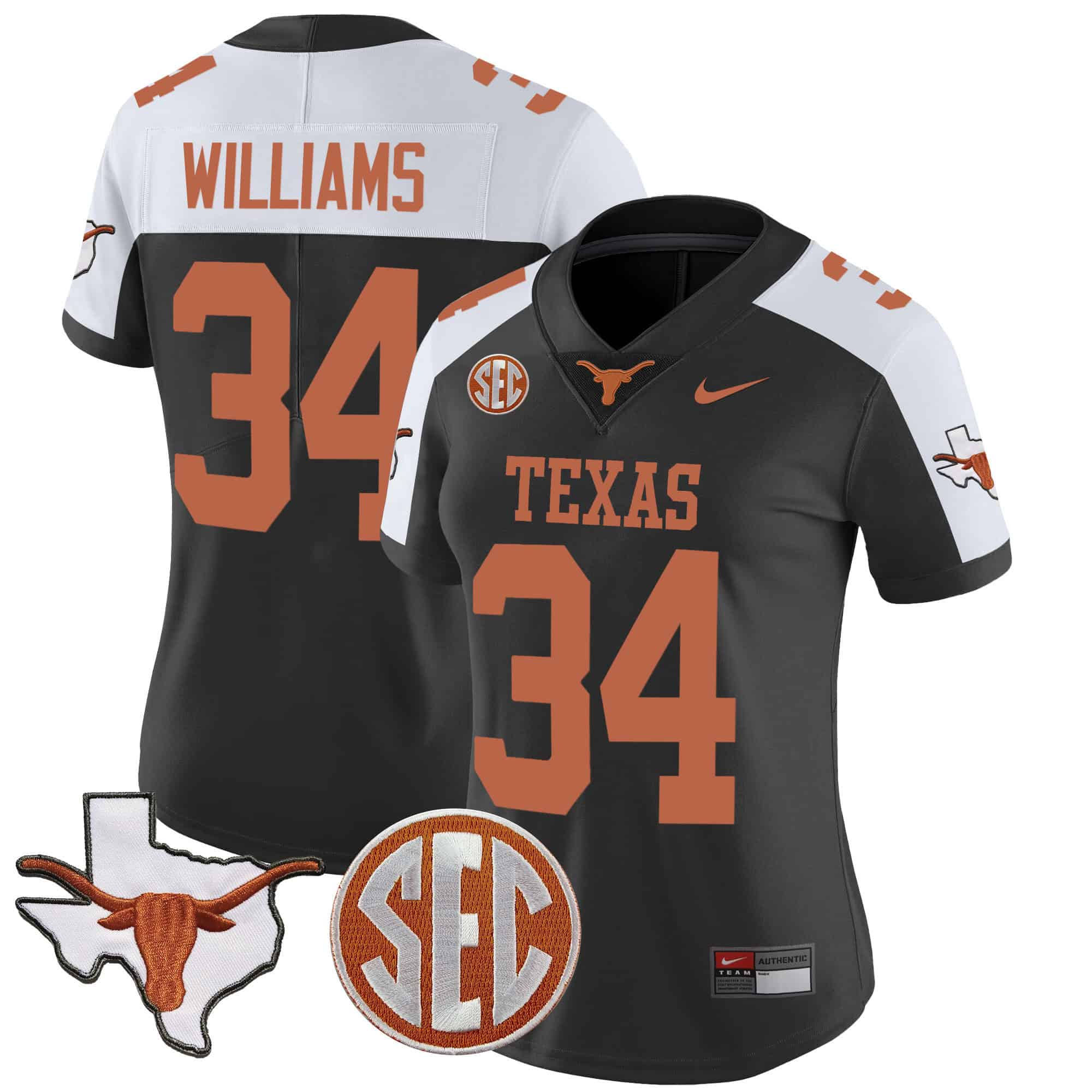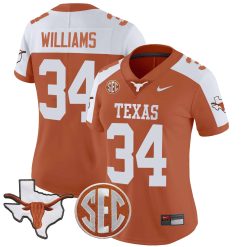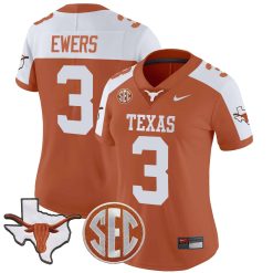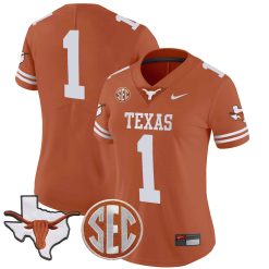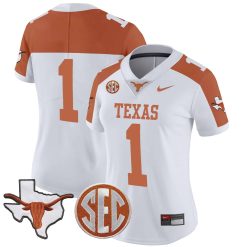 Women’s Texas Longhorns State Map & SEC Patch Vapor Jersey V2 – All Stitched