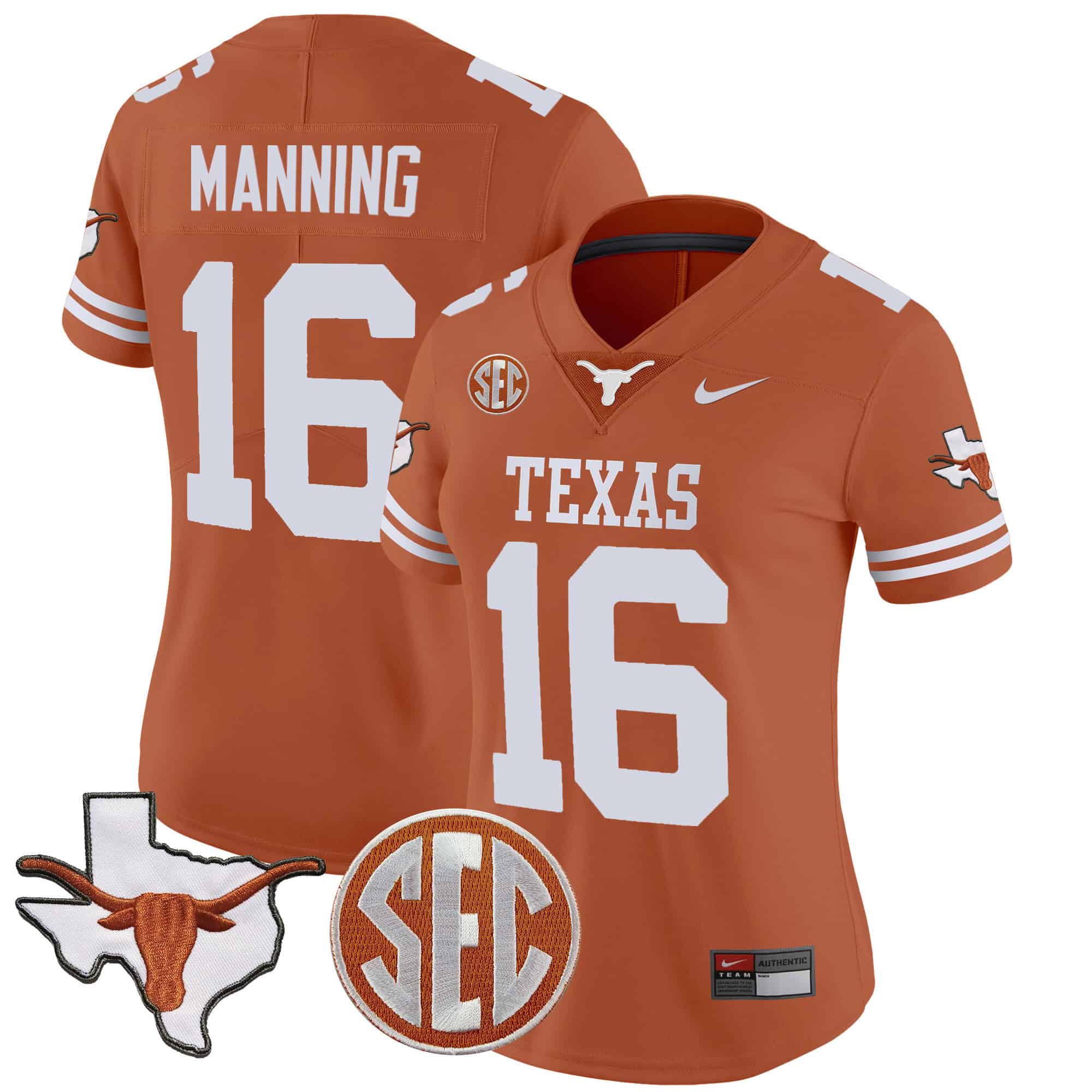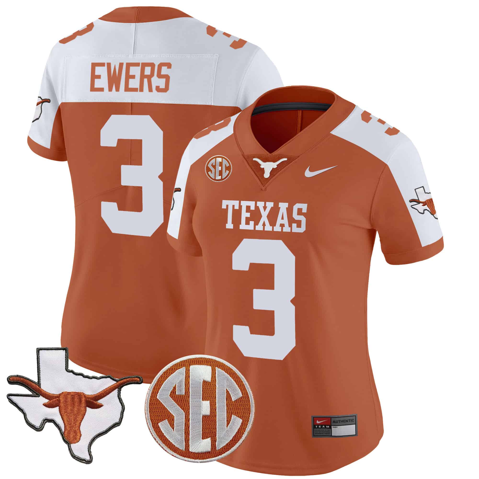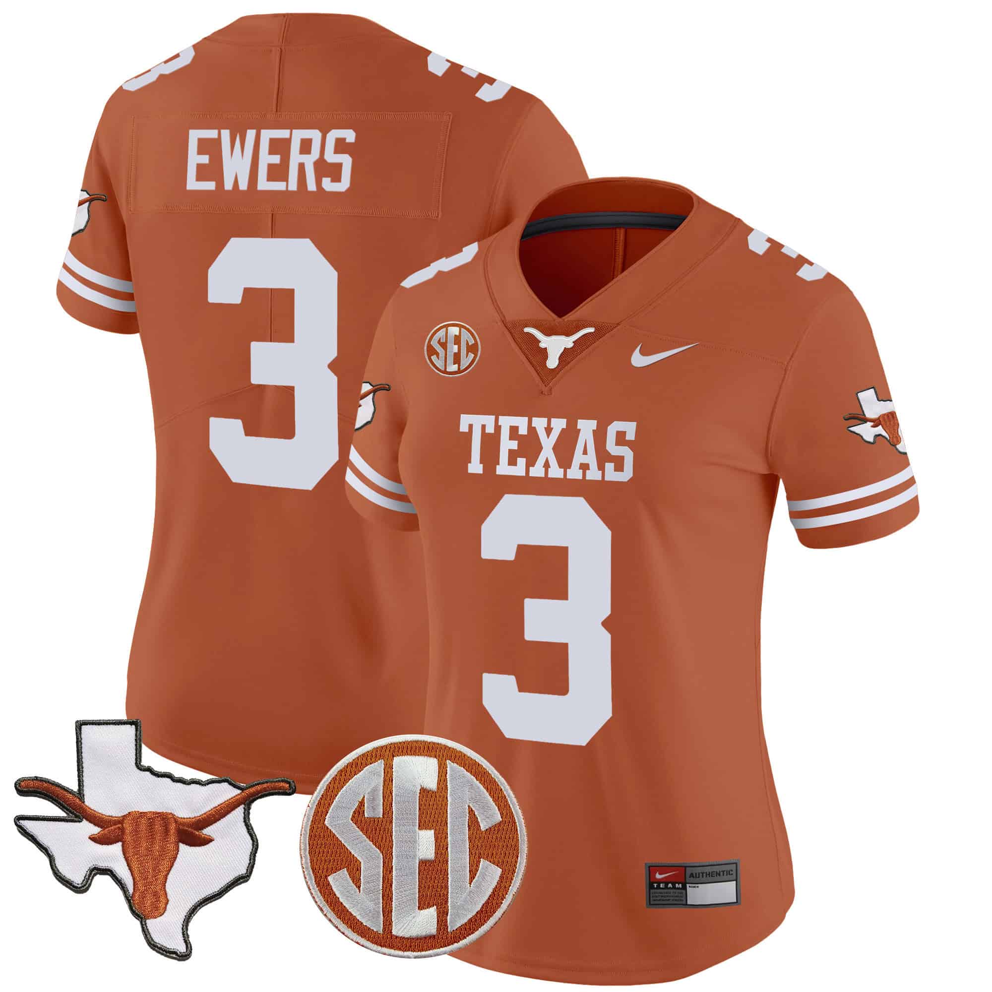 Women's Texas Longhorns State Map & SEC Patch Vapor Jersey V2 - All Stitched