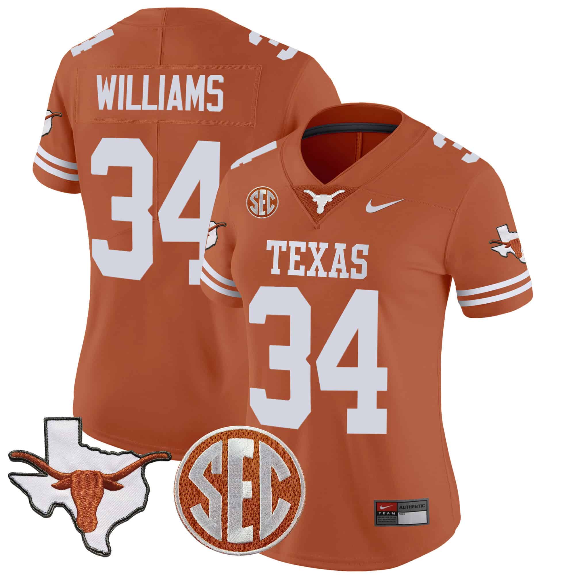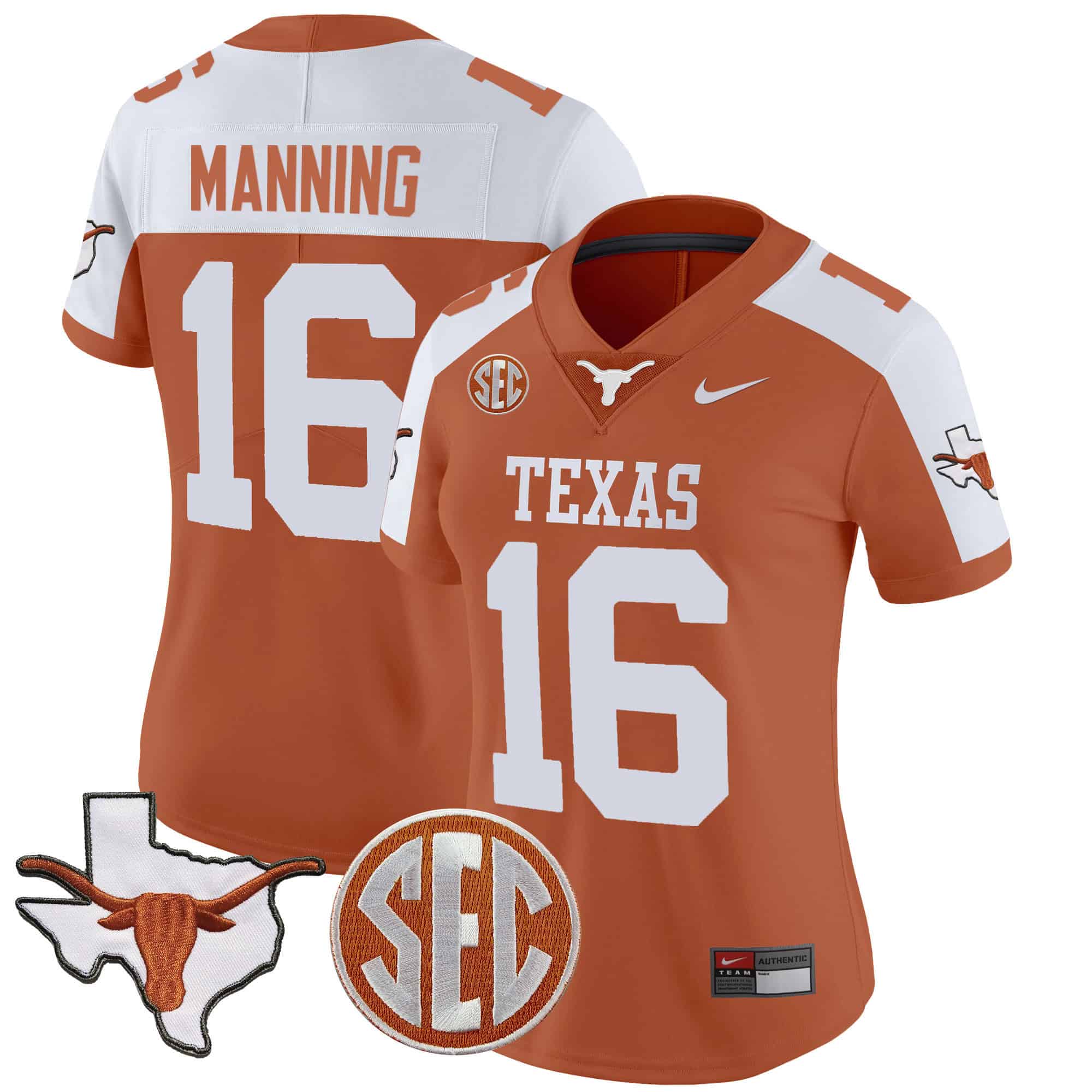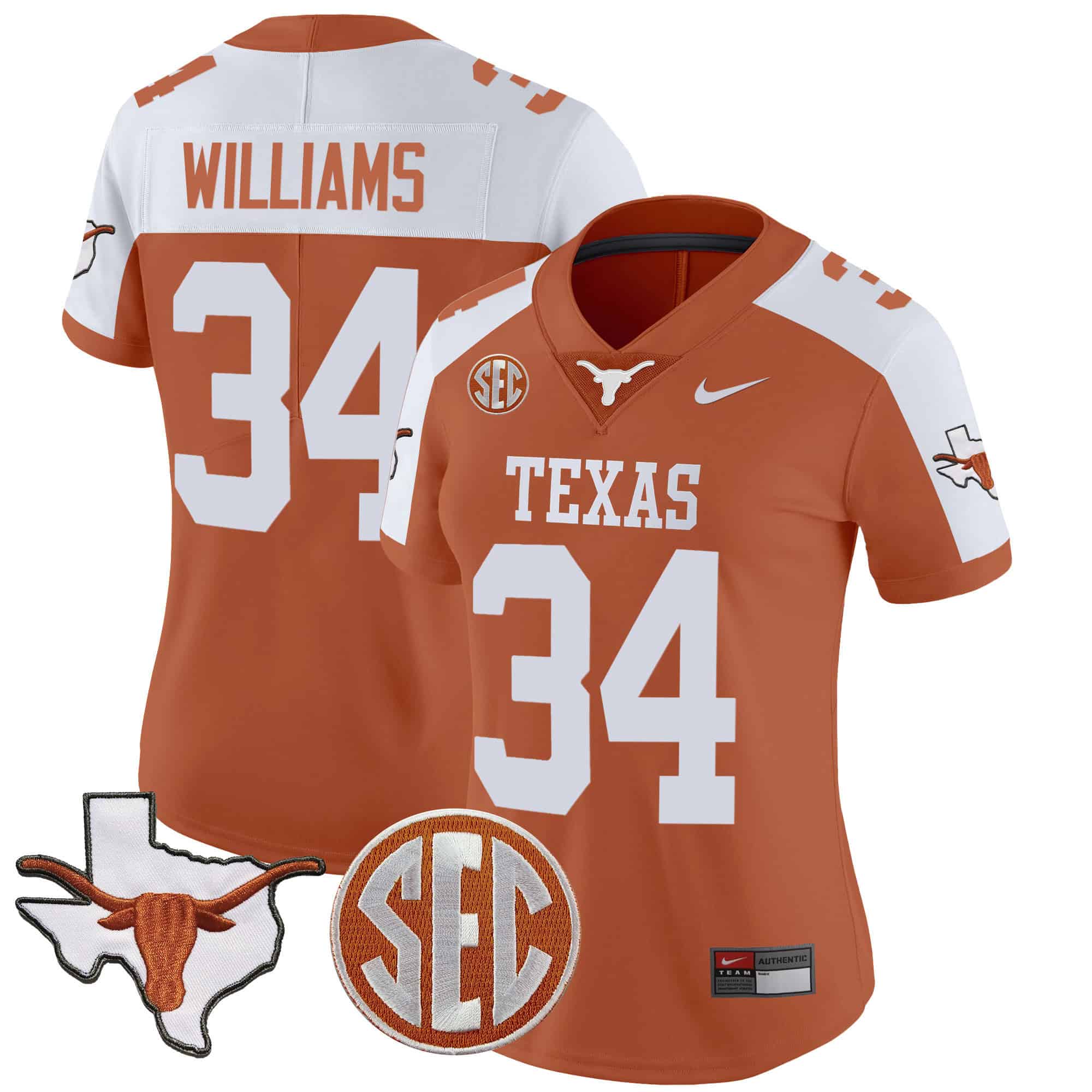Women's Texas Longhorns State Map & SEC Patch Vapor Jersey V2 - All Stitched